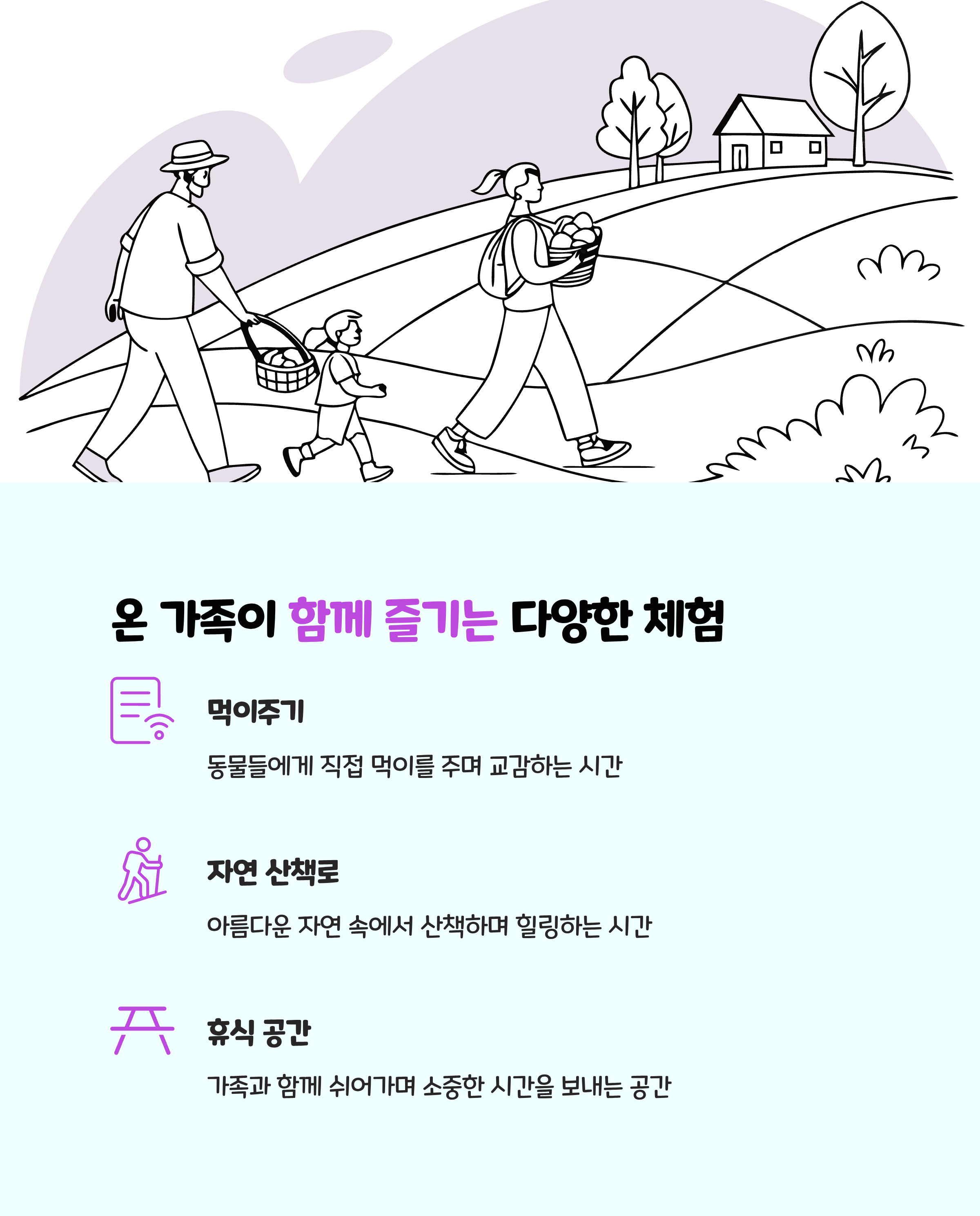 | 체험요금 | 사료통 2,000원, 젖소 우유주기 2,000원, 앵무새 먹이 1,000원 |