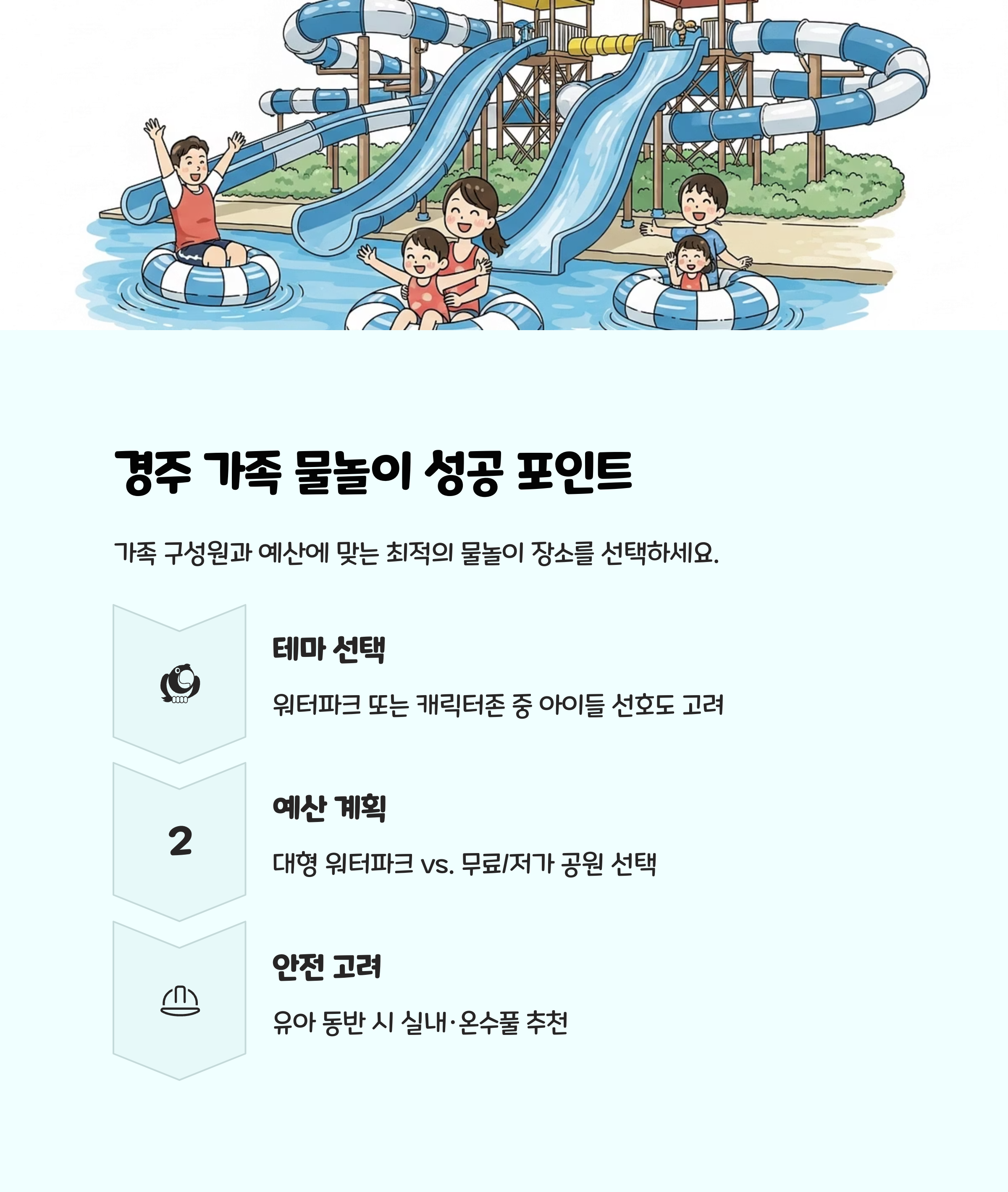 위 내용은 경주월드 캘리포니아비치와 한화리조트 뽀로로아쿠아빌리지 등 경주 주요 가족 물놀이 명소의 정보는 각 시설의 공식 홈페이지, 경주시청 문화관광, 한화리조트, 관광안내 포털 등 신뢰할 수 있는 공식 기관 자료와 여행 전문 사이트 정보를 참고하여 집계한 내용입니다.