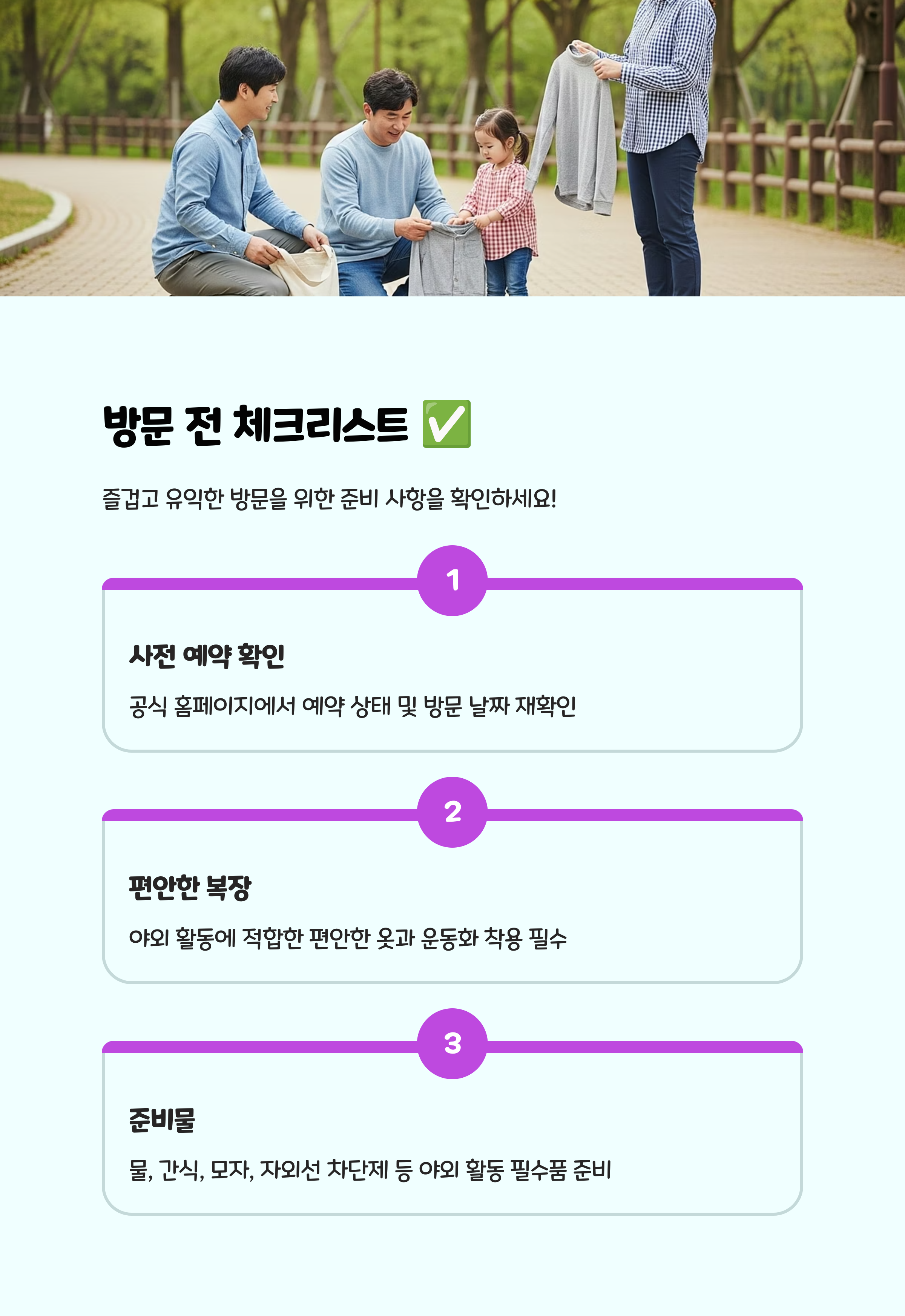 • 방문 전 프로그램 예약은 필수 (특히 휴가철, 주말에는 조기 마감 가능)