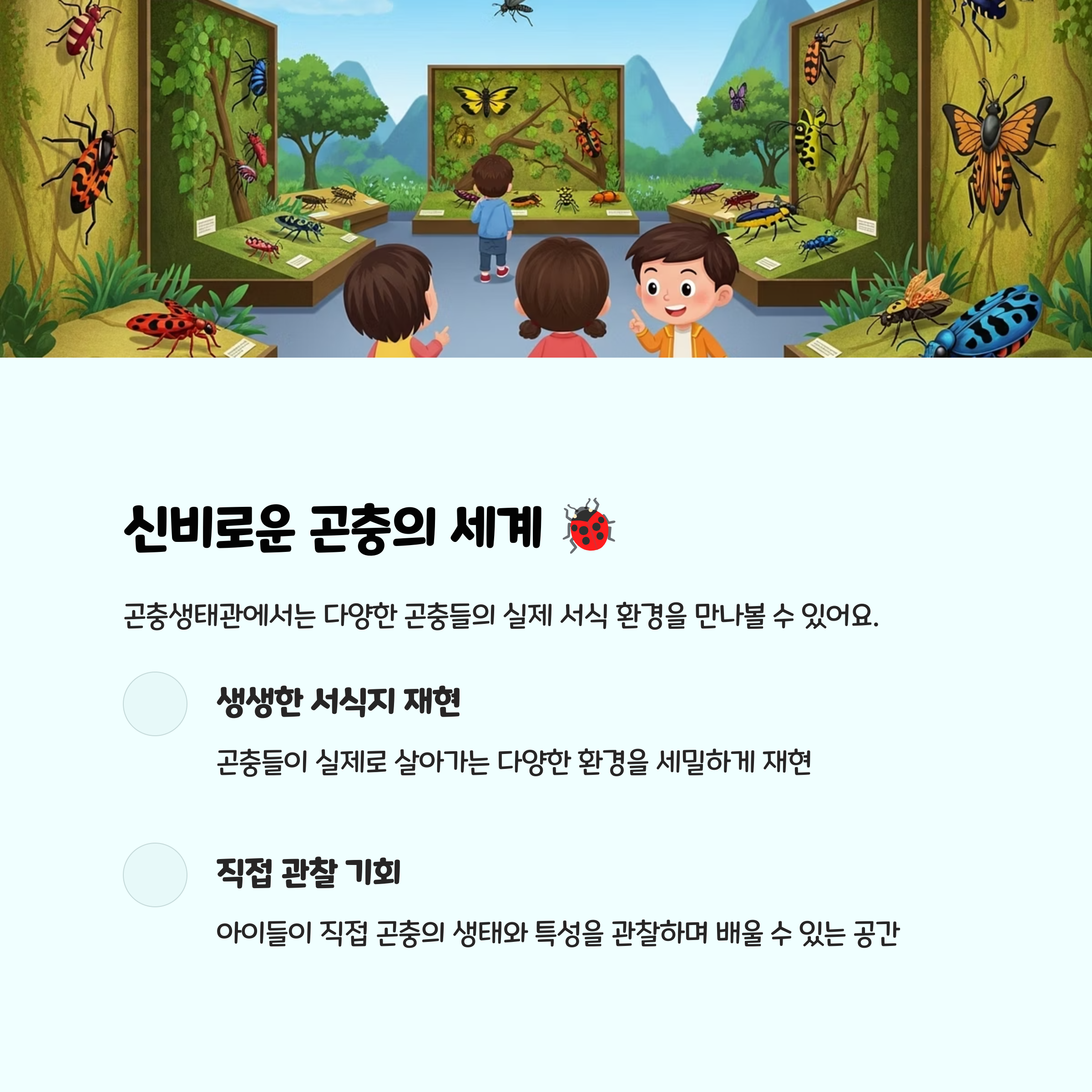 실제 참가 초등학생 설문 결과, 80% 이상이 “직접 보고 듣고 만지는 과정에서 자연이 더 재미있고 소중하게 느껴졌다”고 응답했습니다. 곤충먹이주기, 식물 관찰, 작은 동물과의 교감, 오감 체험 등 다양한 프로그램은 과학교과 과정과 유기적으로 연계되어 있어, 단순한 견학이 아닌 ‘살아있는 학습’이 가능합니다.
