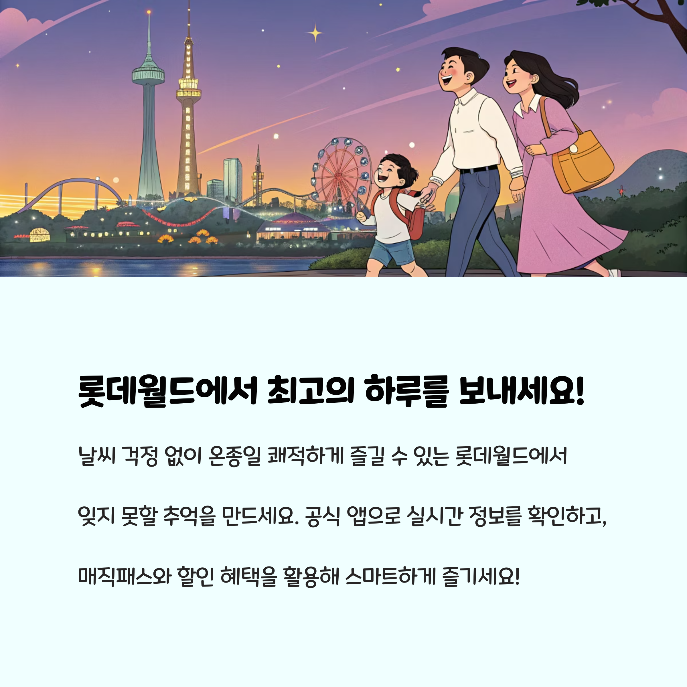 최신 할인 정보와 공연 시간, 인기 어트랙션 대기 현황은 공식 앱을 통해 실시간으로 확인하는 것이 가장 확실합니다. 날씨 걱정 없이, 서울 한복판에서 꿈같은 하루를 보내고 싶다면 지금 바로 롯데월드 실내 어드벤처존을 계획해보세요.