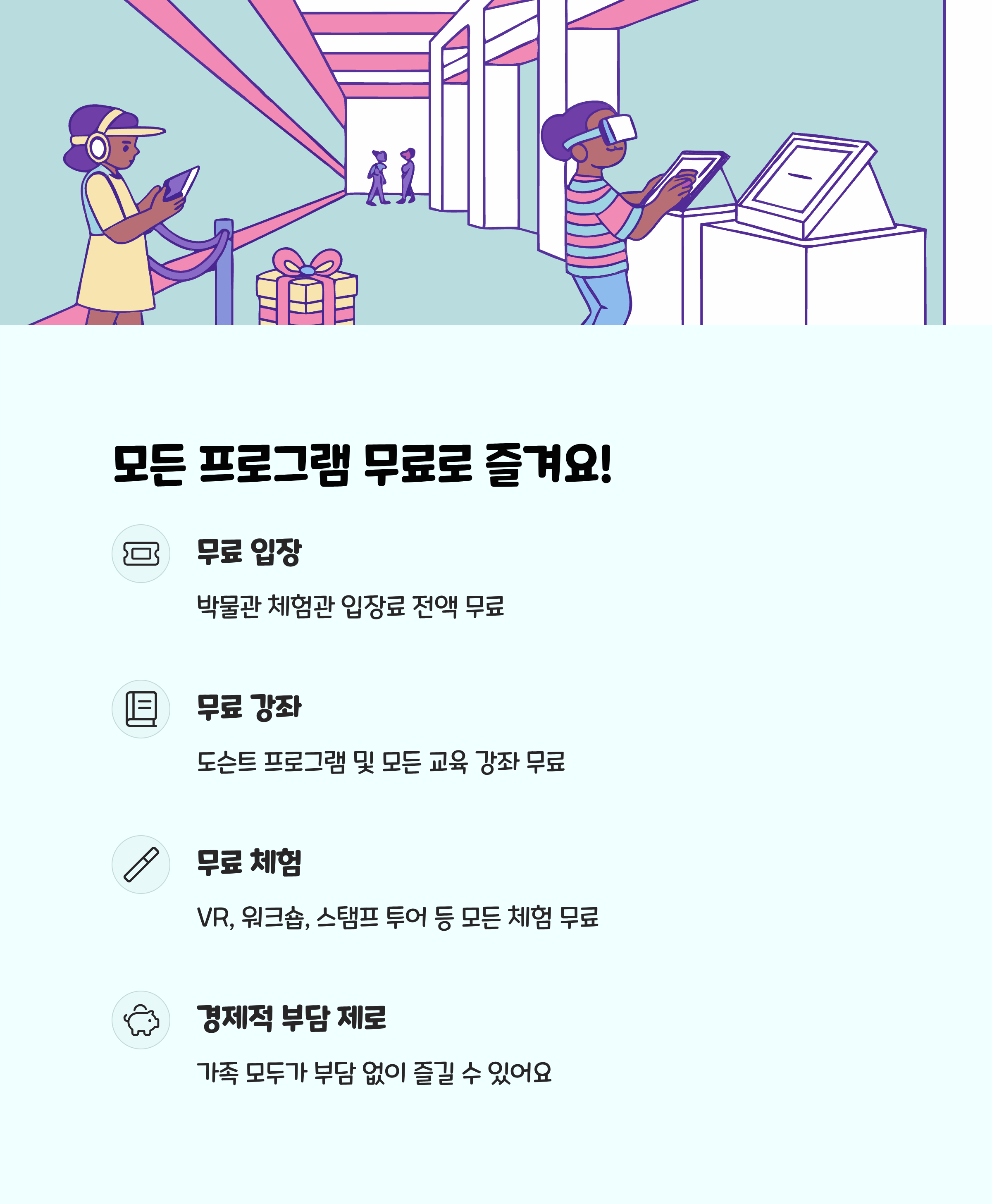 • 주요 대상: 6~10세 어린이(전시관), 5세 이하 유아(섬마을놀이터)