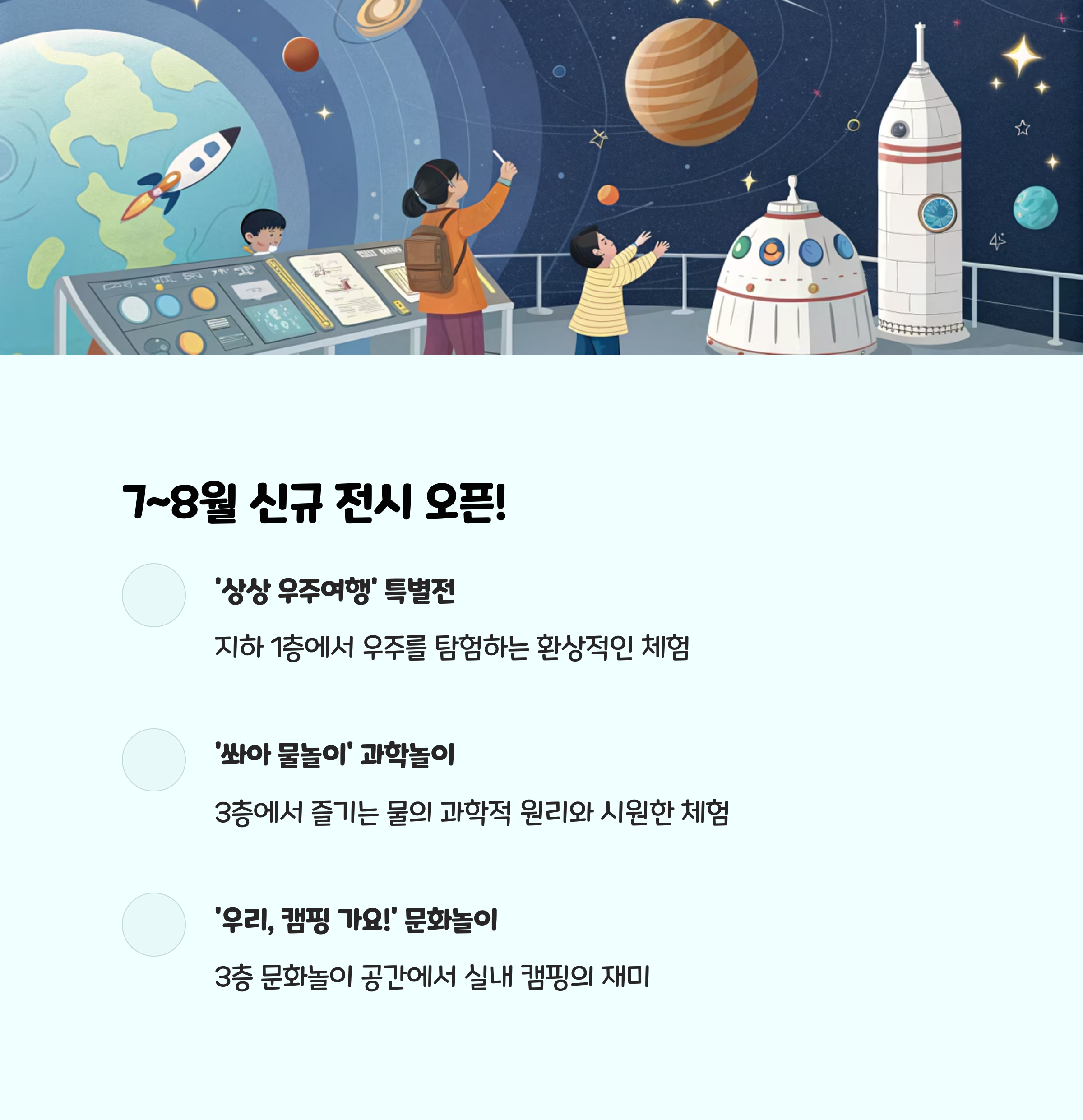 2025년 7월 9일(수)부터 새로운 전시 공간이 가오픈되어, 방문객들은 기존 전시와 더불어 색다른 체험을 즐길 수 있습니다. 특히 7월 15일에는 ‘작업실’ 컨셉의 특별 체험존이 오픈하여, 아이들이 직접 예술가가 되어볼 수 있습니다.