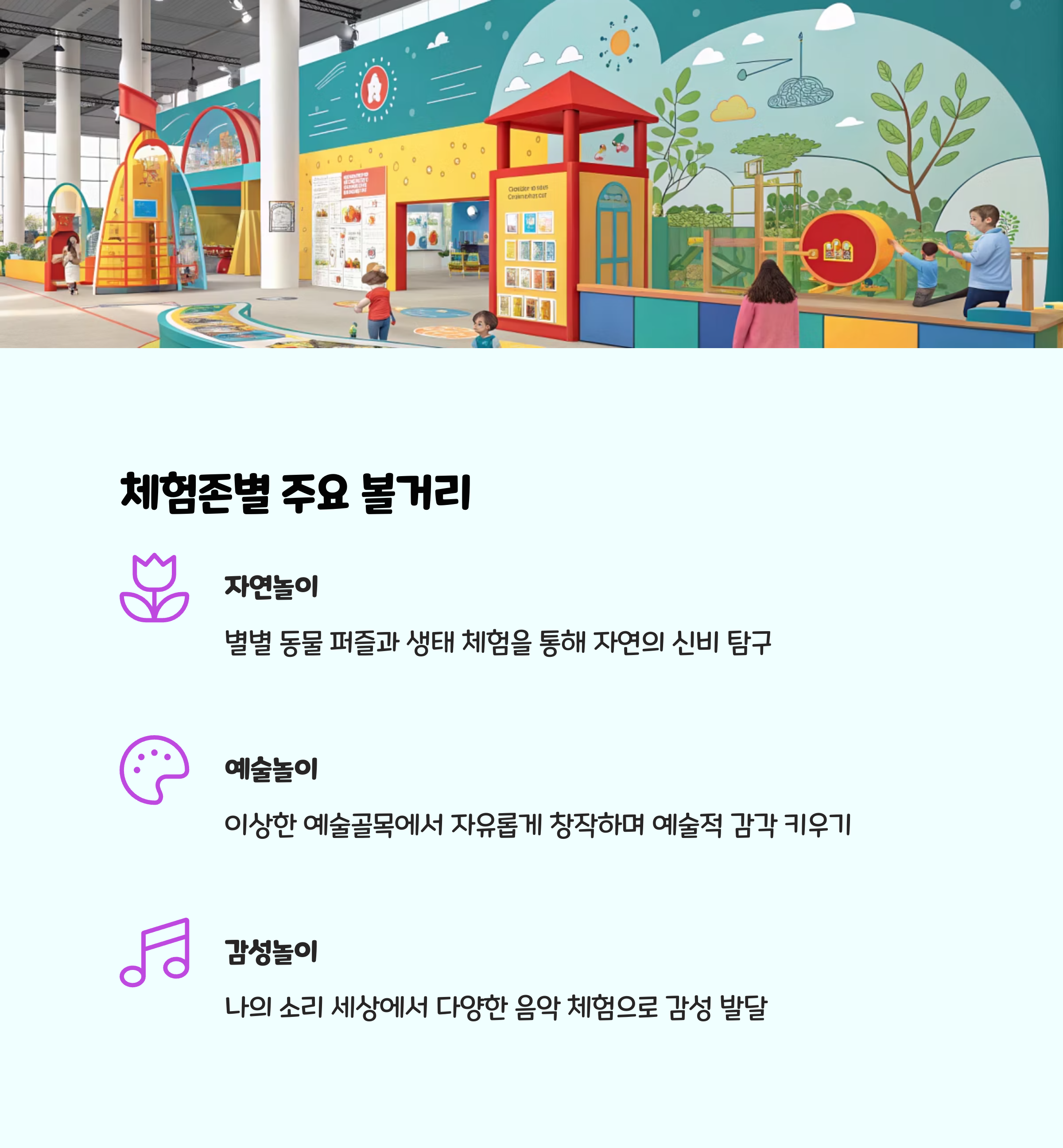 2025년 7월과 8월, 서울 상상나라는 아이들의 창의력과 오감을 자극하는 다양한 가족 체험 프로그램을 선보입니다. 특히 여름방학 기간에 맞춰 요리, 예술, 과학 등 다채로운 주제의 교육형 이벤트가 진행되어, 실내에서 알차게 하루를 보낼 수 있습니다.