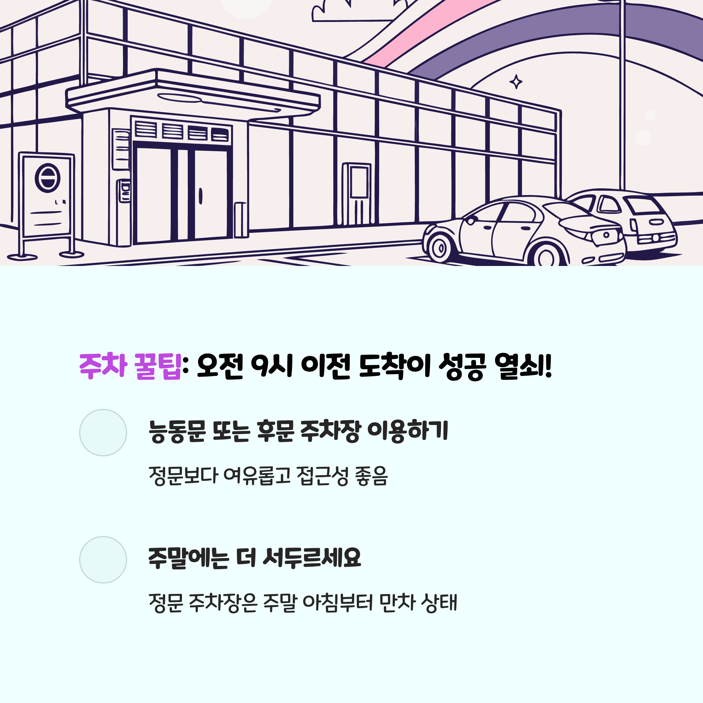 1. 아침 일찍 출발, 주차 걱정 없는 입장