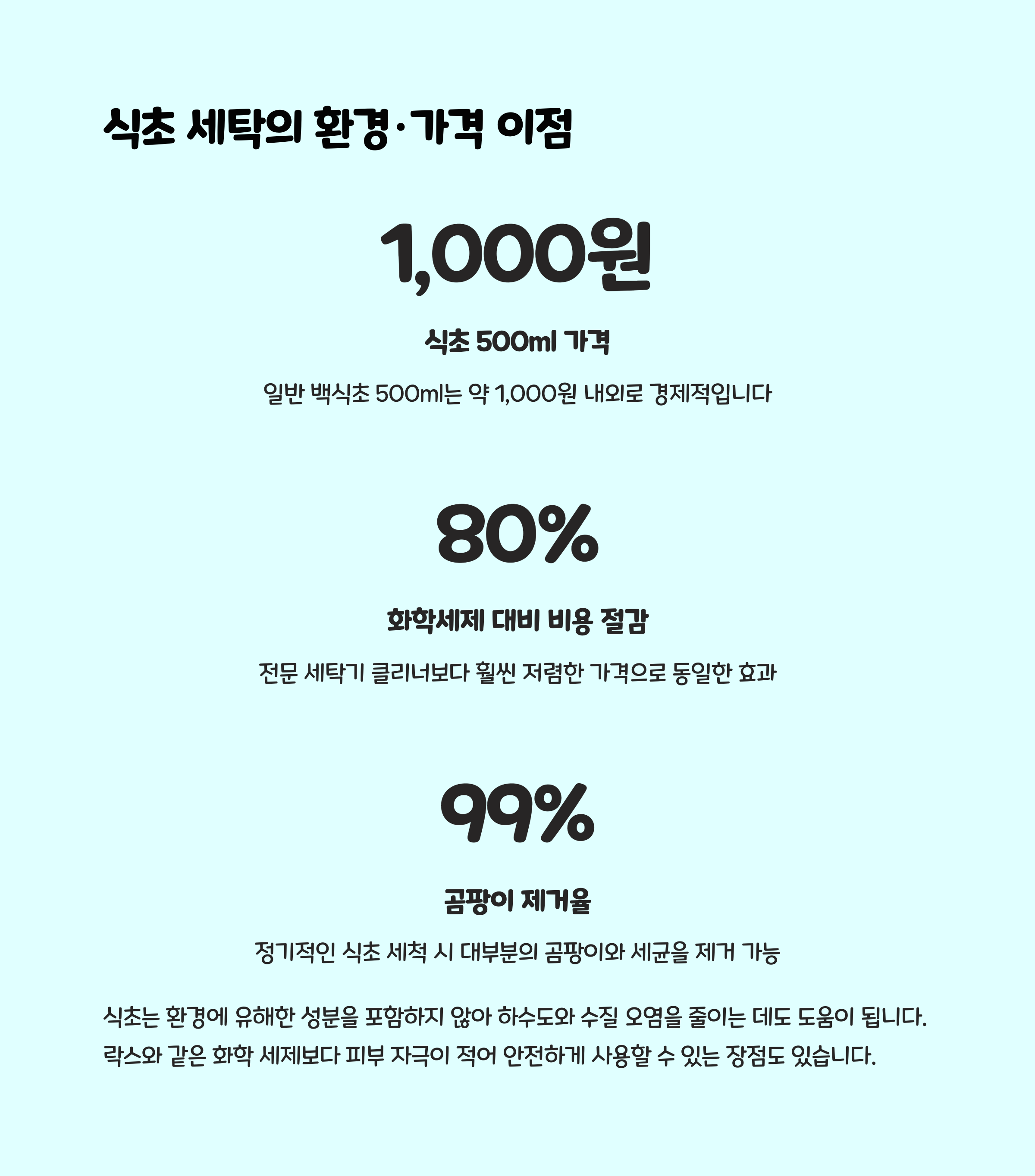 - 헹굼 추가 : 식초 냄새가 걱정된다면 헹굼 과정을 한 번 더 추가하여 냄새를 완전히 제거하세요.