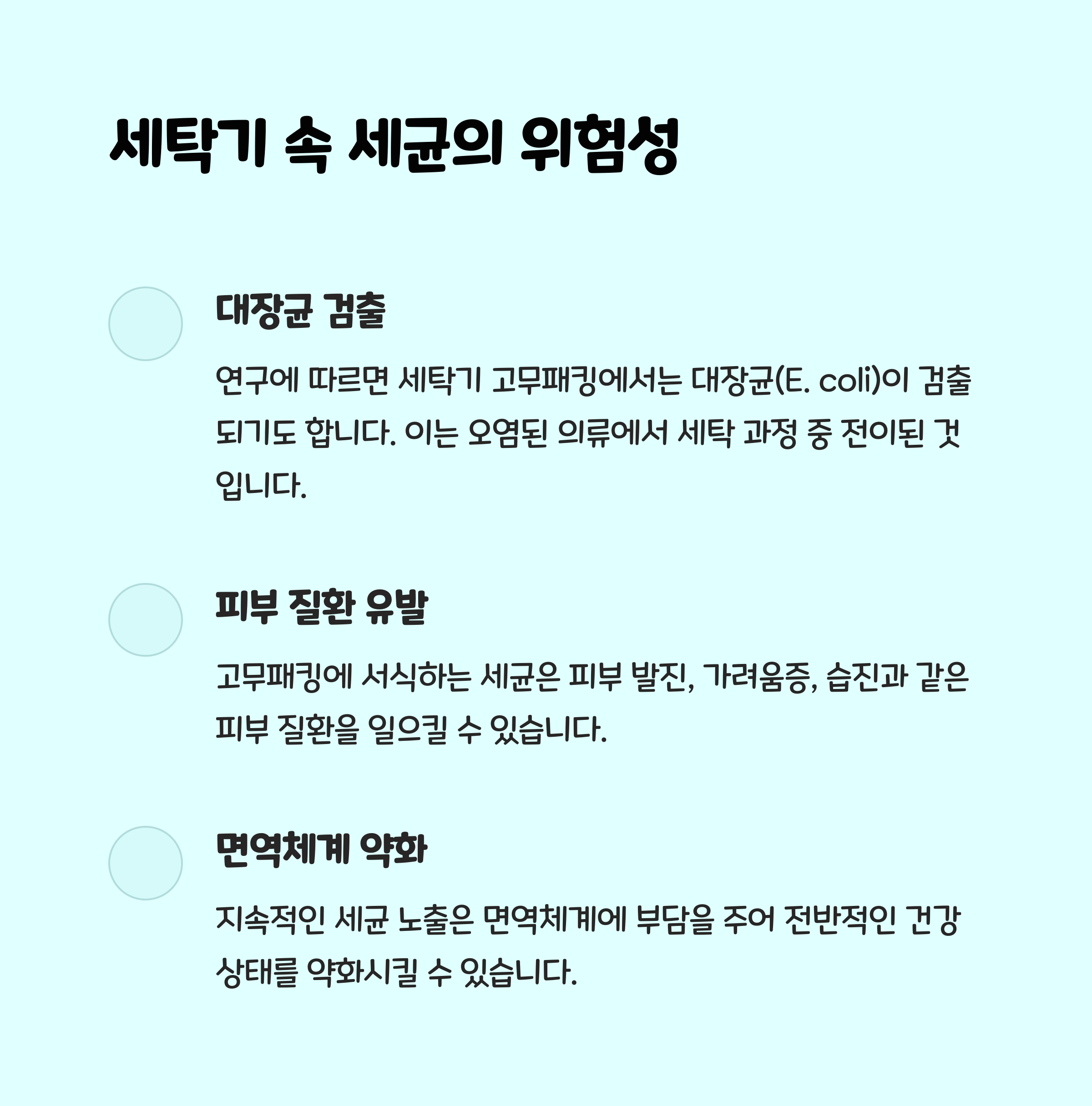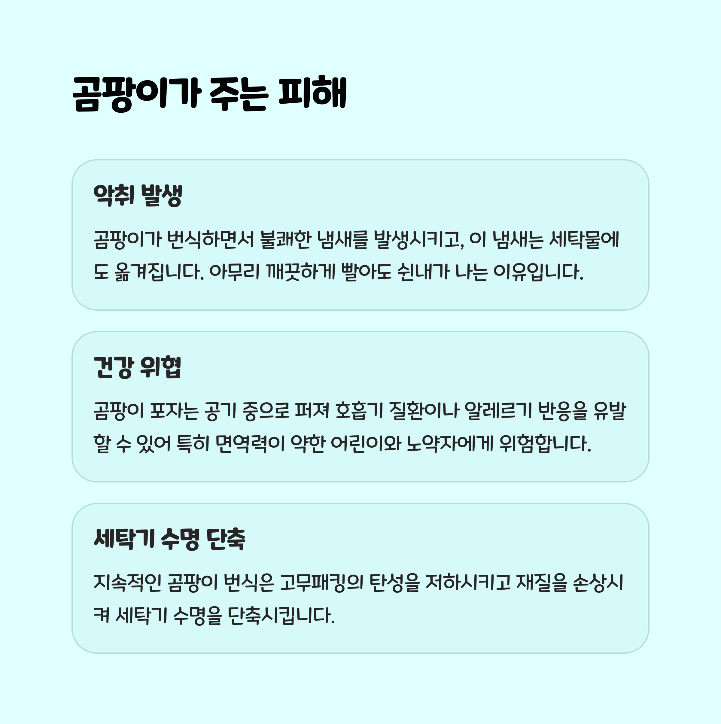 세탁기 고무패킹에 곰팡이가 생기는 이유는 무엇인가요?