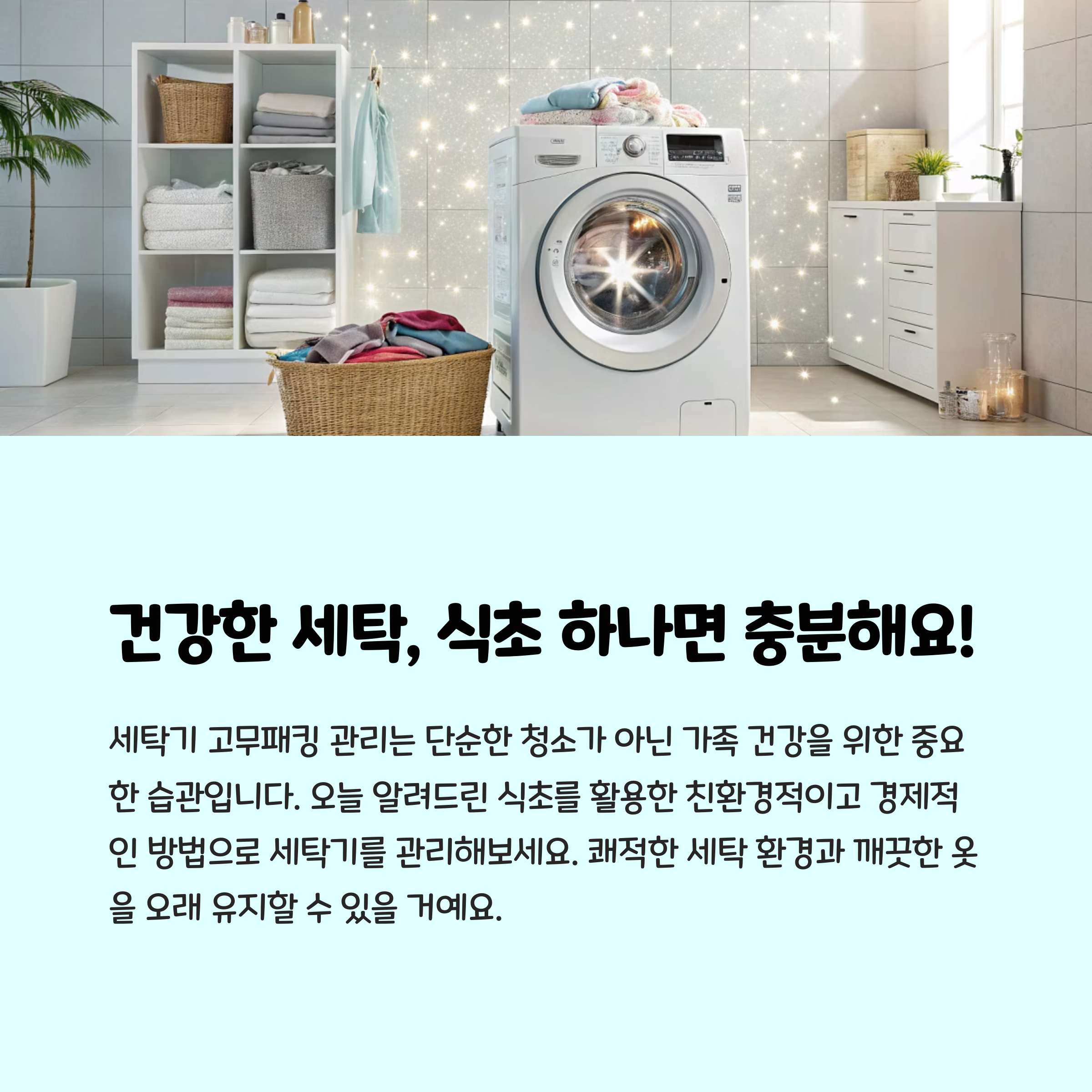 식초 하나로 간단하고 효과적으로 세탁기를 관리할 수 있습니다. 이 방법은 비용 부담이 적고 환경에도 친화적이며, 화학 제품을 사용하지 않아 안전합니다. 꾸준히 관리하면 곰팡이 걱정 없이 깨끗하고 쾌적한 세탁기를 유지할 수 있으니, 지금 바로 시작해 보세요!