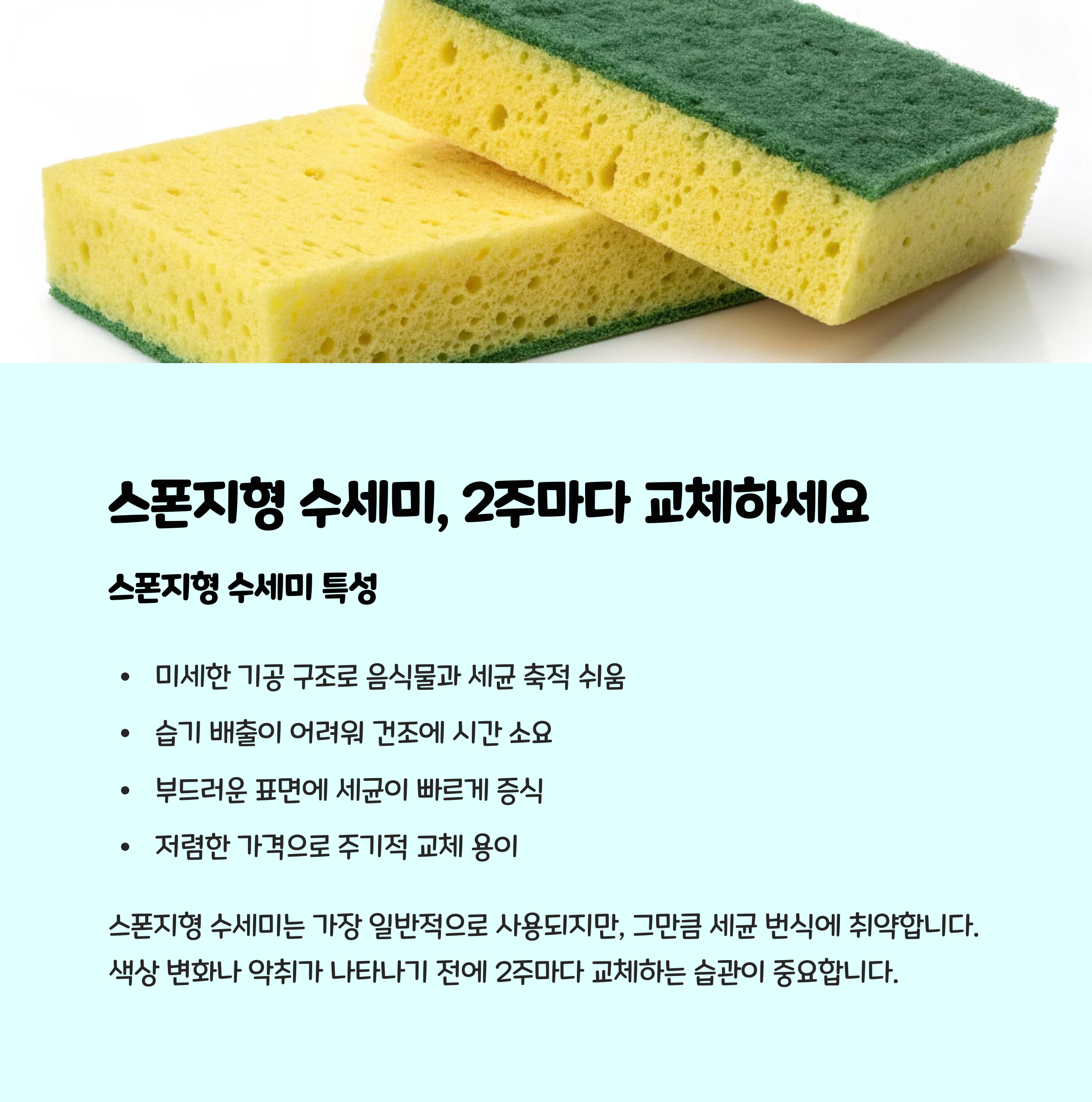 - 스펀지형 수세미 : 2주에 한 번