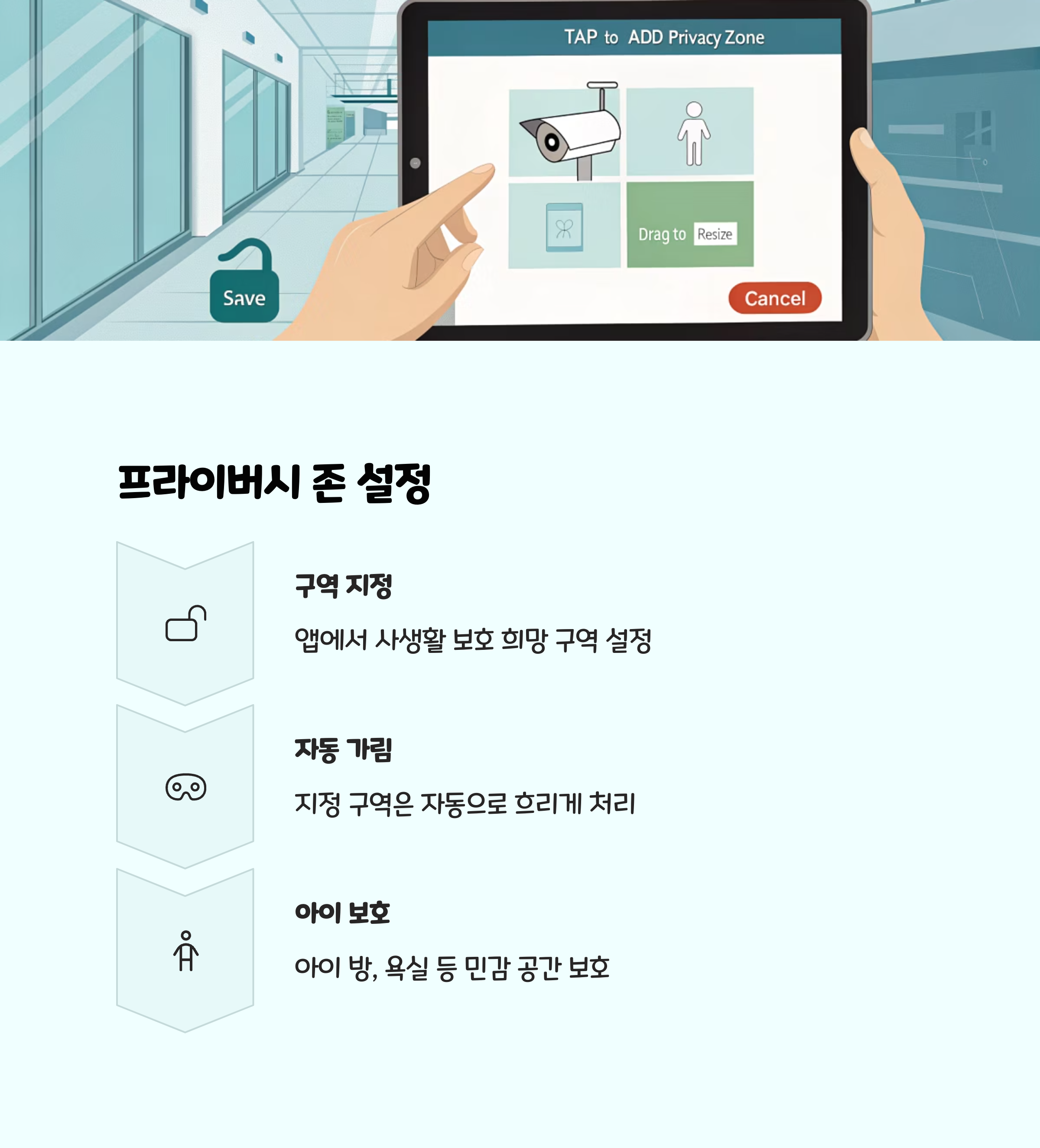 실내 활용: 아기, 반려동물 모니터링, 집안 곳곳의 안전 확인, 외출 중 집안 상황 모니터링 등 다양한 용도로 활용할 수 있습니다.실외 활용: 방문자 확인, 차량 및 주차장 감시, 정원 보호, 외부 침입 방지 등 외부 보안 강화에 효과적입니다.앱 연동 및 알림 설정: 스마트폰과 연동해 실시간 영상 확인, 움직임 감지 시 알림, 영상 저장 및 재생 등 편리한 기능을 적극 활용하세요.클라우드 저장 및 로컬 저장: 클라우드 저장은 데이터 손실 염려가 적고, 로컬 저장(SD카드 등)은 비용 부담이 적습니다. 필요에 따라 선택하세요.