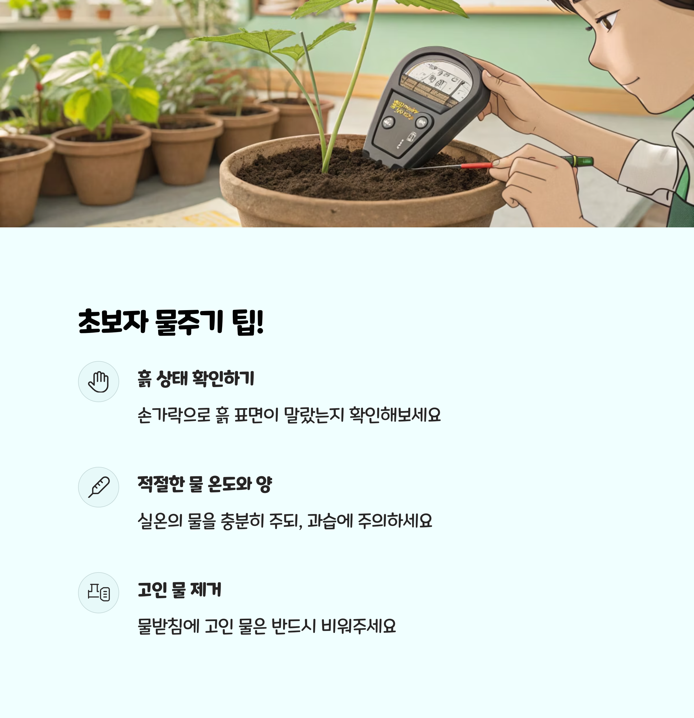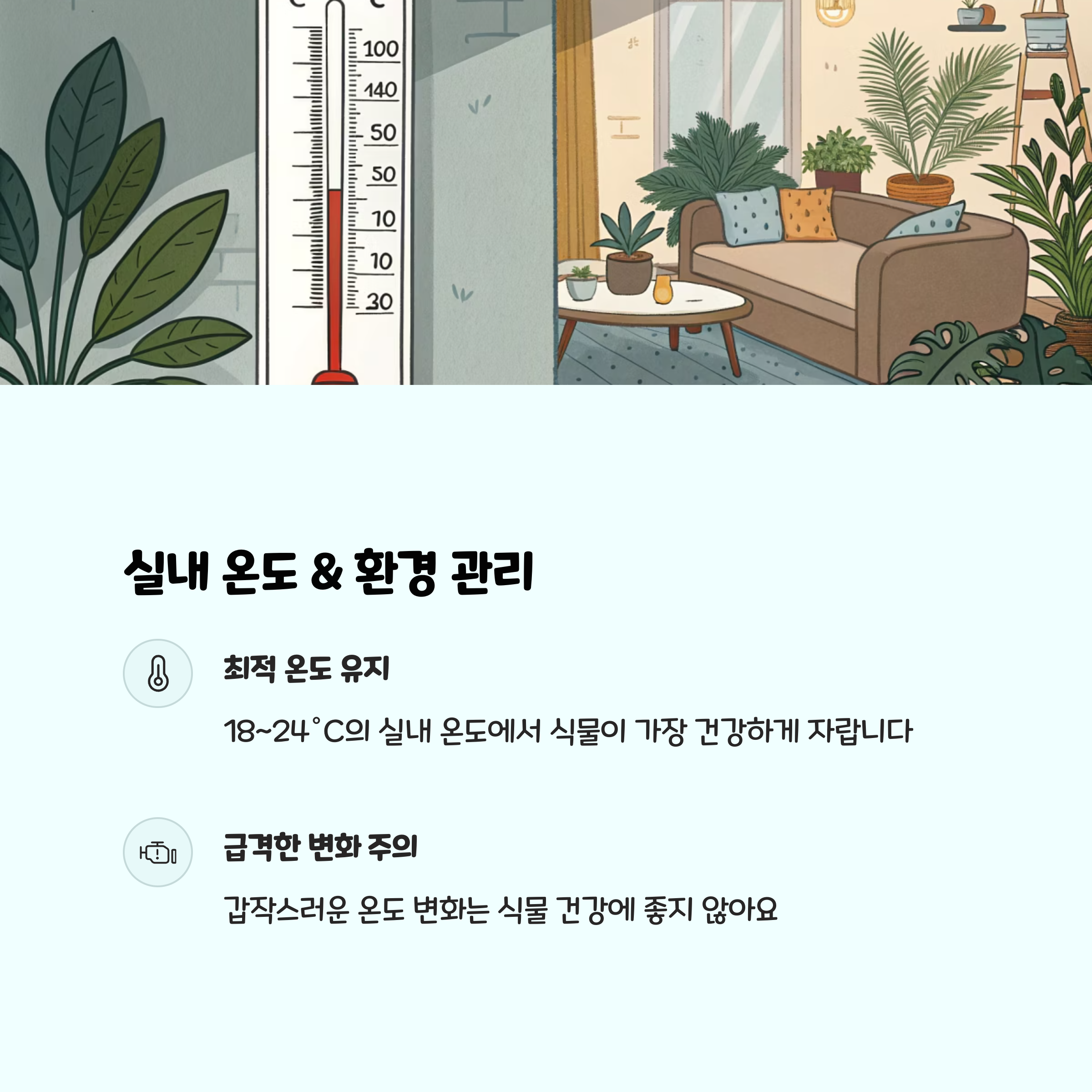 - 빛 관리 : 빛이 부족하면 인공조명을 활용하세요.