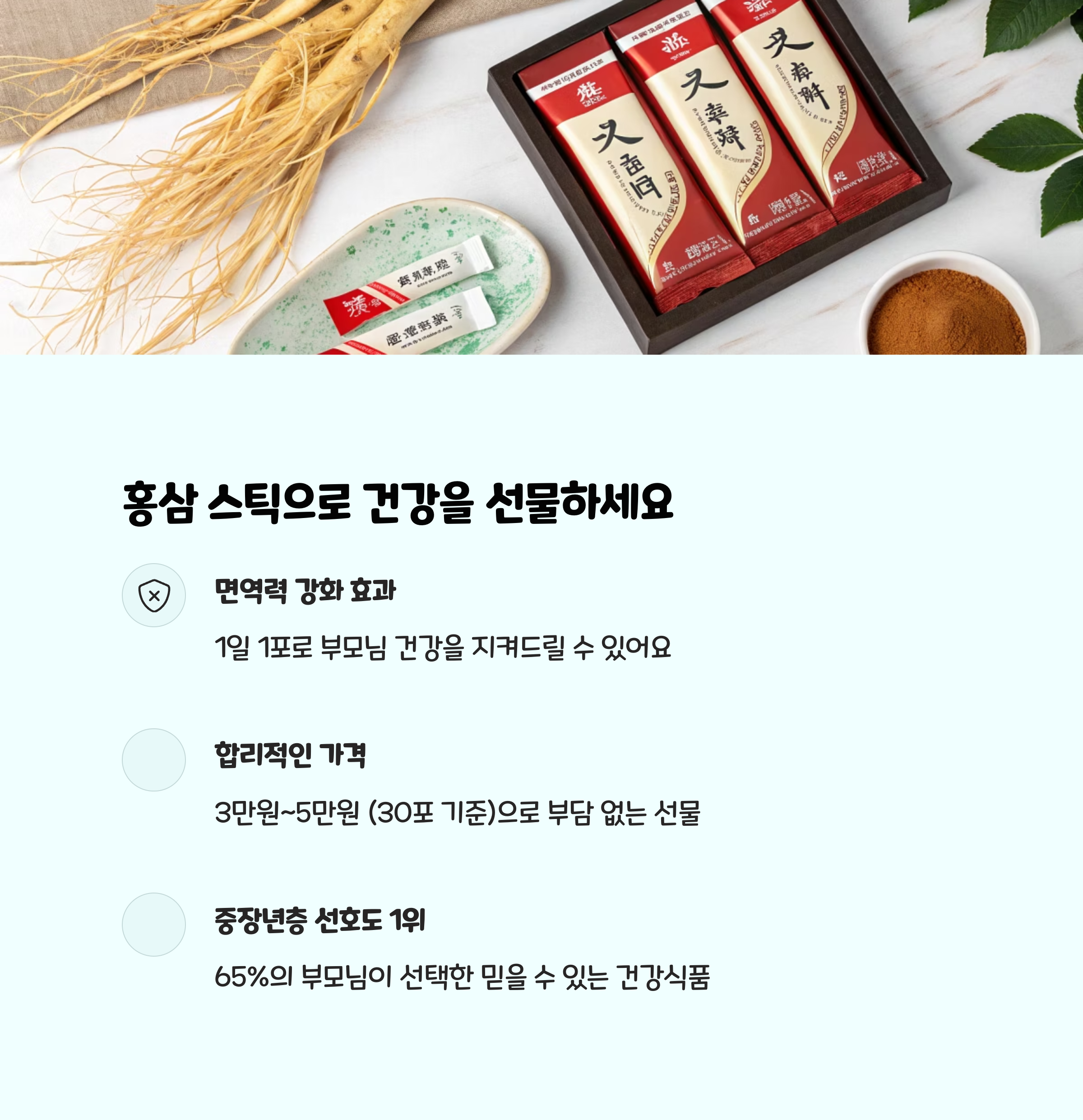 - “홍삼 스틱은 부모님이 간편하게 챙겨 드실 수 있어 만족도가 높았다”