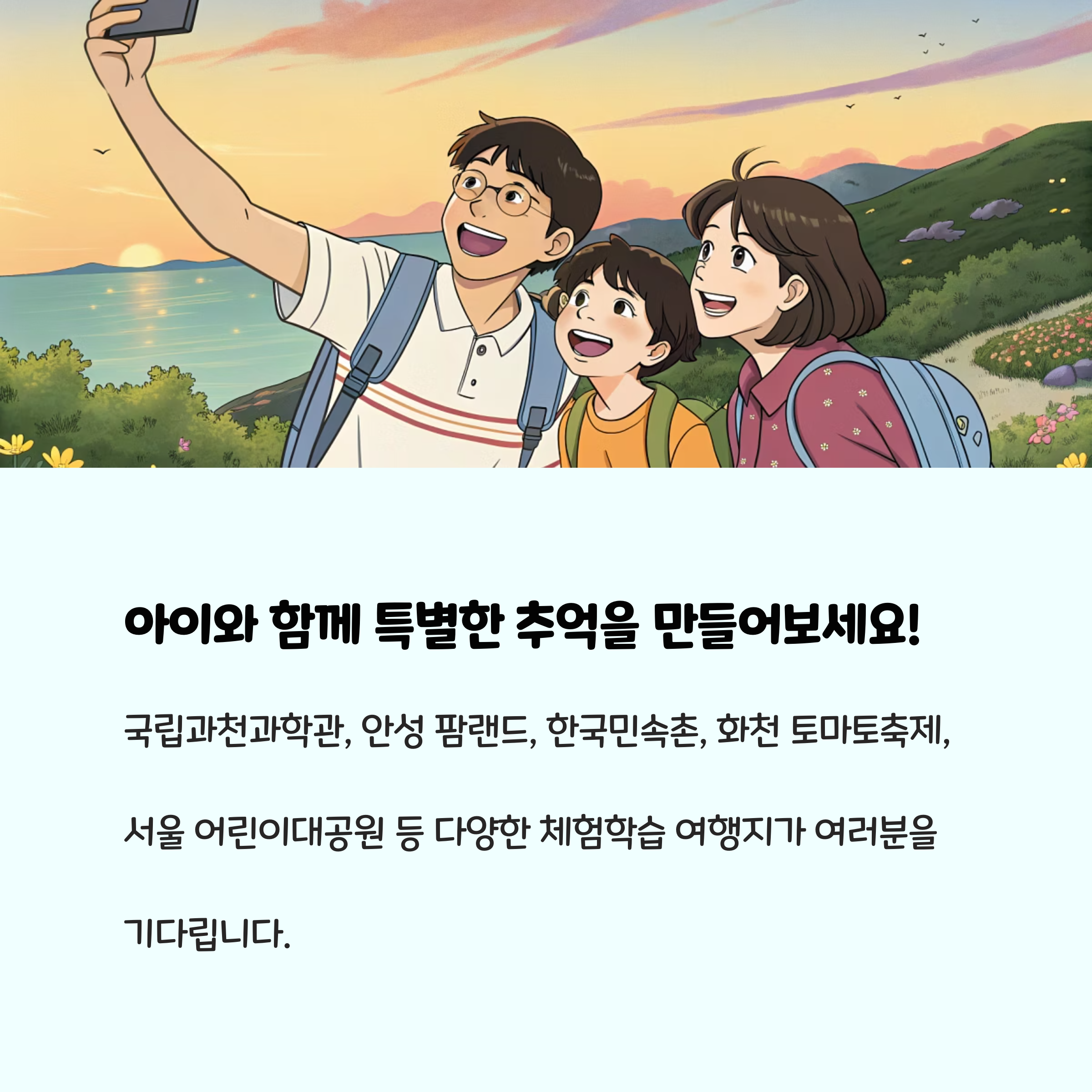 여름방학은 아이의 성장과 가족의 소중한 추억을 쌓을 수 있는 최고의 기회입니다. 이번에 소개한 체험학습 여행지에서 아이와 함께 의미 있는 체험과 배움을 경험해 보세요. 여행 전 각 장소의 공식 홈페이지에서 운영시간과 예약 정보를 꼭 확인하시고, 안전하고 즐거운 여름방학 보내시길 바랍니다. 내일부터는 오늘 소개해드린 여름방학 자연 체험학습 여행지 TOP 5를 한곳한곳 자세히 알아보도록 하겠습니다.