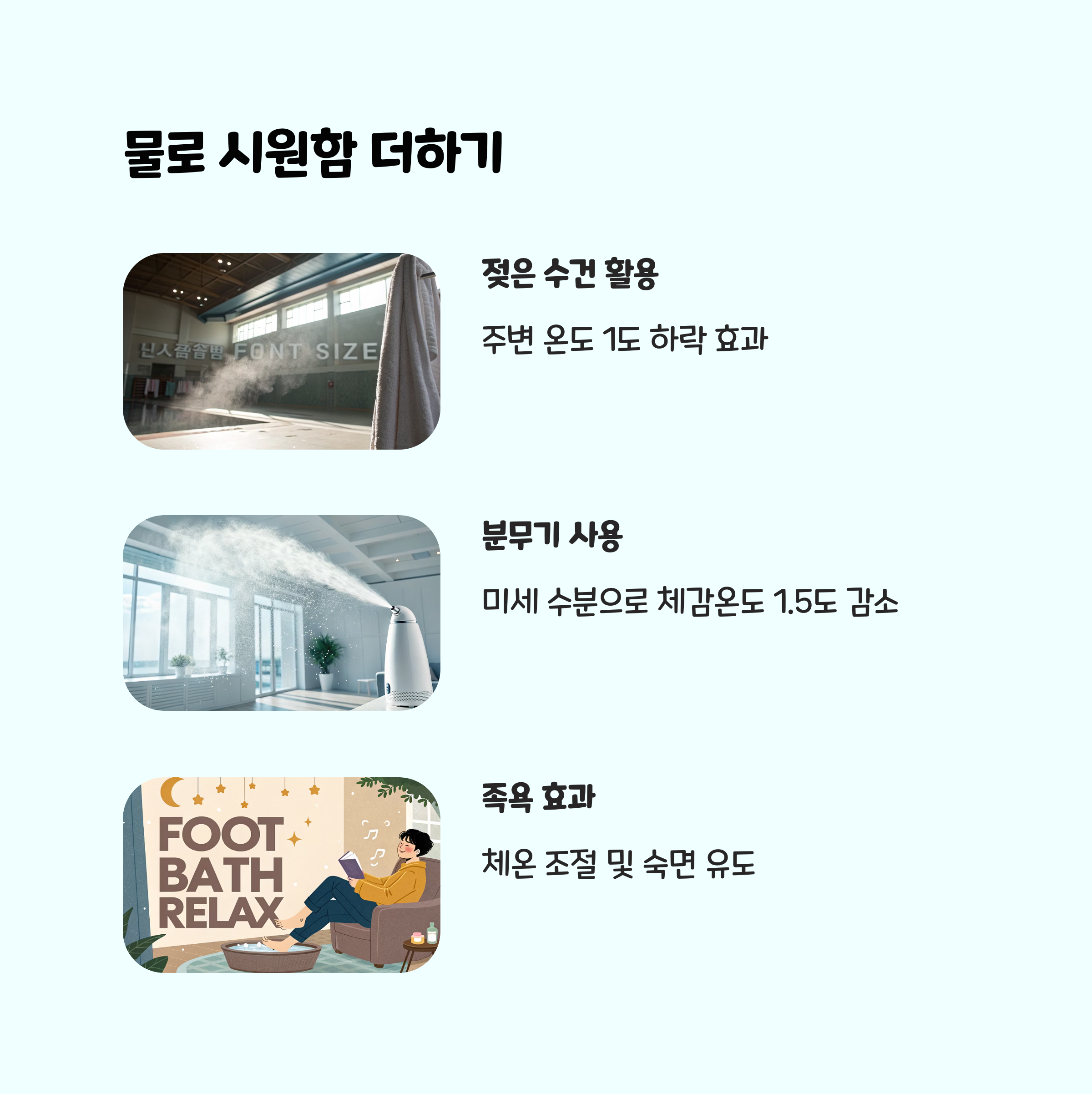 에어컨 없이도 실내 온도를 3도 이상 낮추는 것은 충분히 가능합니다. 핵심은 공기 순환, 햇빛 차단, 불필요한 열원 제거, 즉석 냉방 도구 활용에 있습니다. 비용 부담 없이, 환경까지 생각하는 여름나기 방법을 오늘부터 실천해보세요. 작은 변화가 큰 시원함을 가져다줄 것