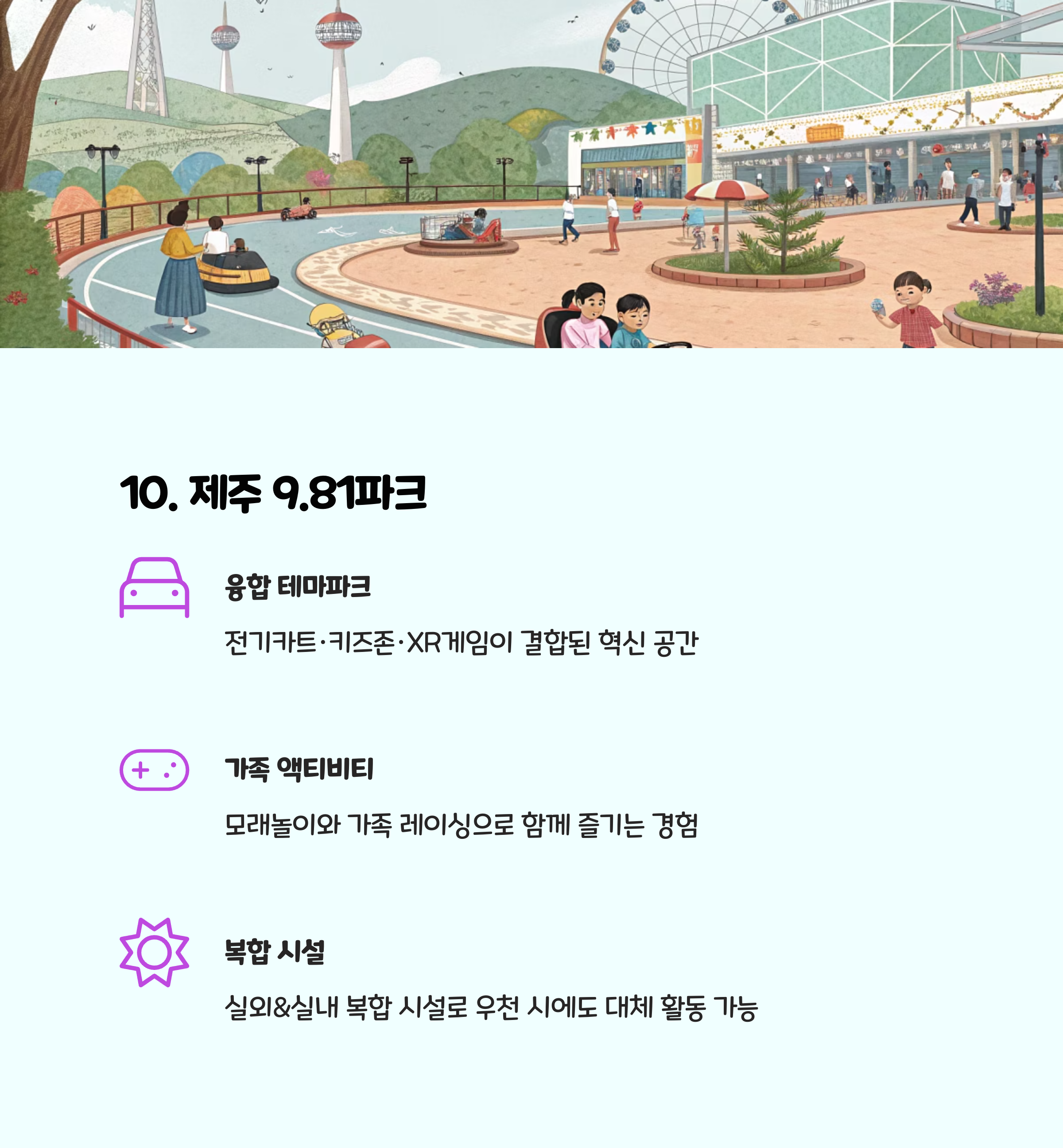9.81파크는 전기카트, VR, 실내외 놀이터 등 다양한 액티비티와 자연 체험을 동시에 즐길 수 있는 곳입니다. “아이와 부모 모두가 만족하는 액티비티 중심 여행지”로 2025년 여름방학에도 높은 인기를 끌고 있습니다.
