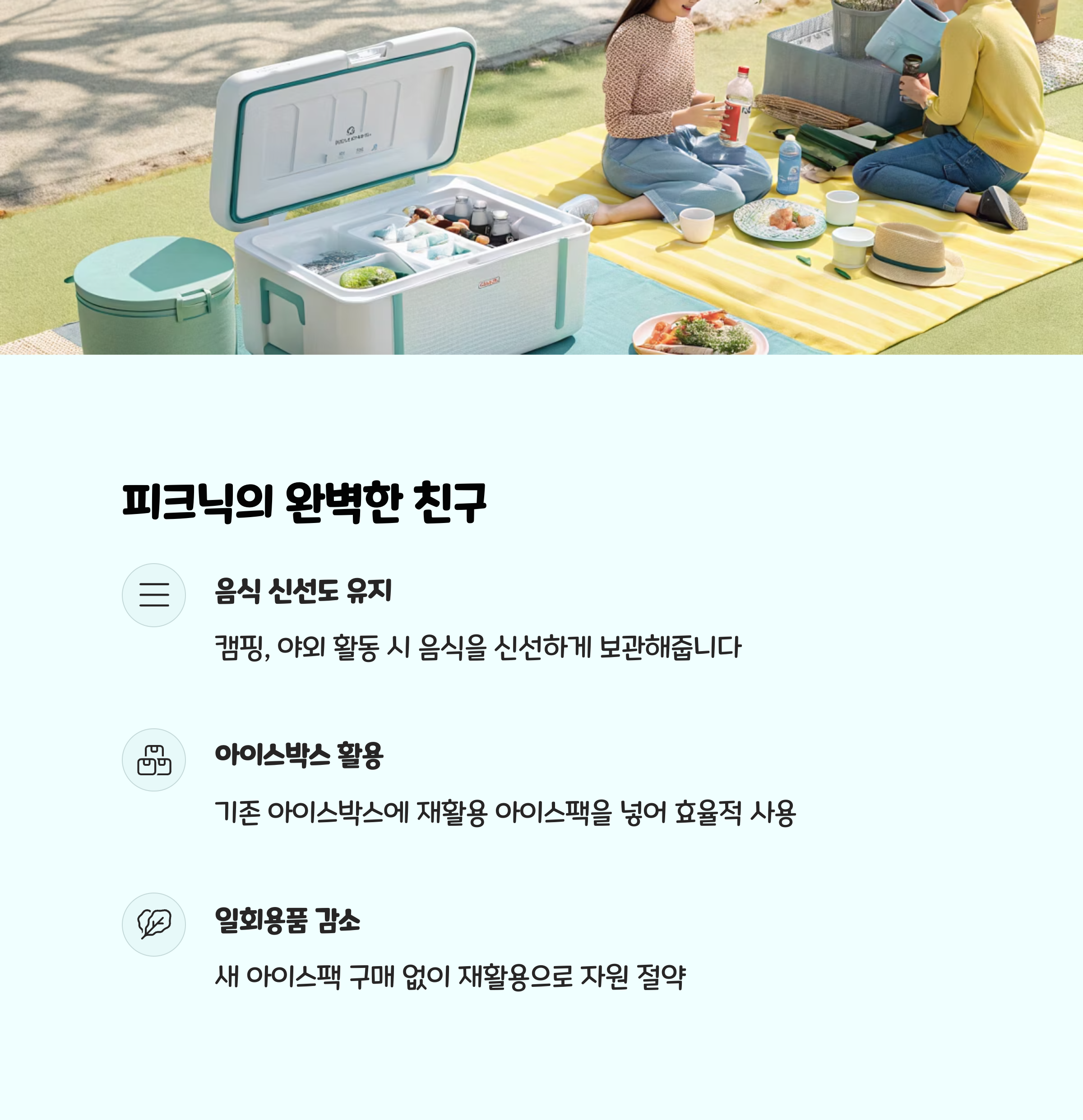 여름철 소풍, 캠핑, 장보기 시 아이스팩을 보냉백에 넣으면 음료와 음식의 신선도를 오래 유지할 수 있습니다.