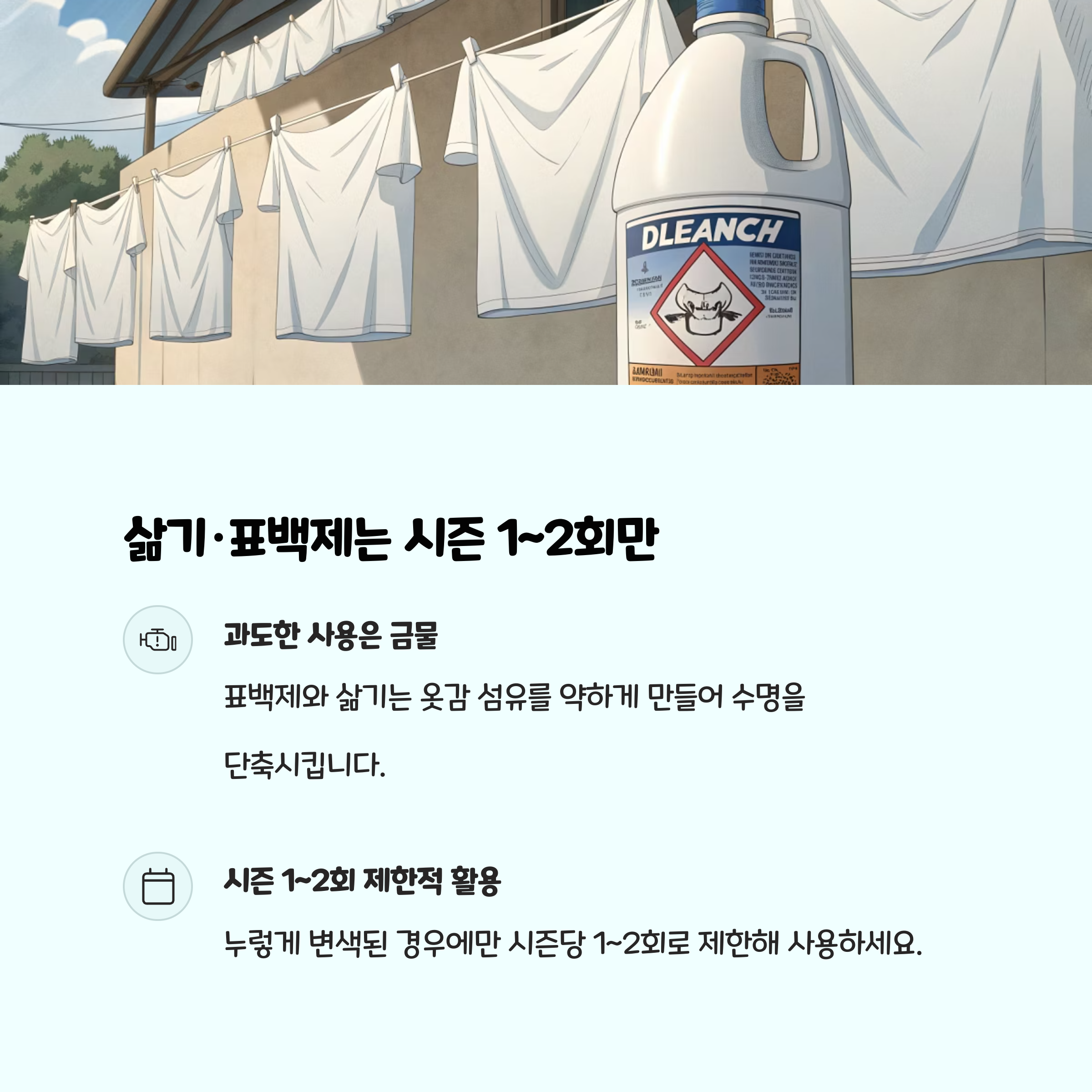 6. 표백·삶기 활용은 시즌 1~2회, 과도한 사용은 금물