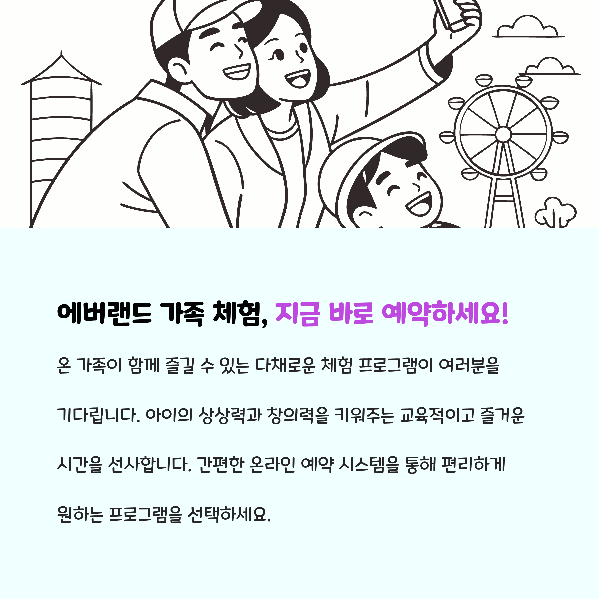 에버랜드 가족 체험 프로그램은 아이의 발달 단계에 맞는 다양한 놀이와 교육 체험, 그리고 가족 간 휴식을 위한 공간이 잘 조성되어 있어 아이와 함께하는 가족에게 최적화된 선택입니다. 사전 예약과 할인 전략을 활용하고, 연령별 맞춤 공간을 충분히 즐기며 아이와 소중한 추억을 만들어 보시길 추천합니다.