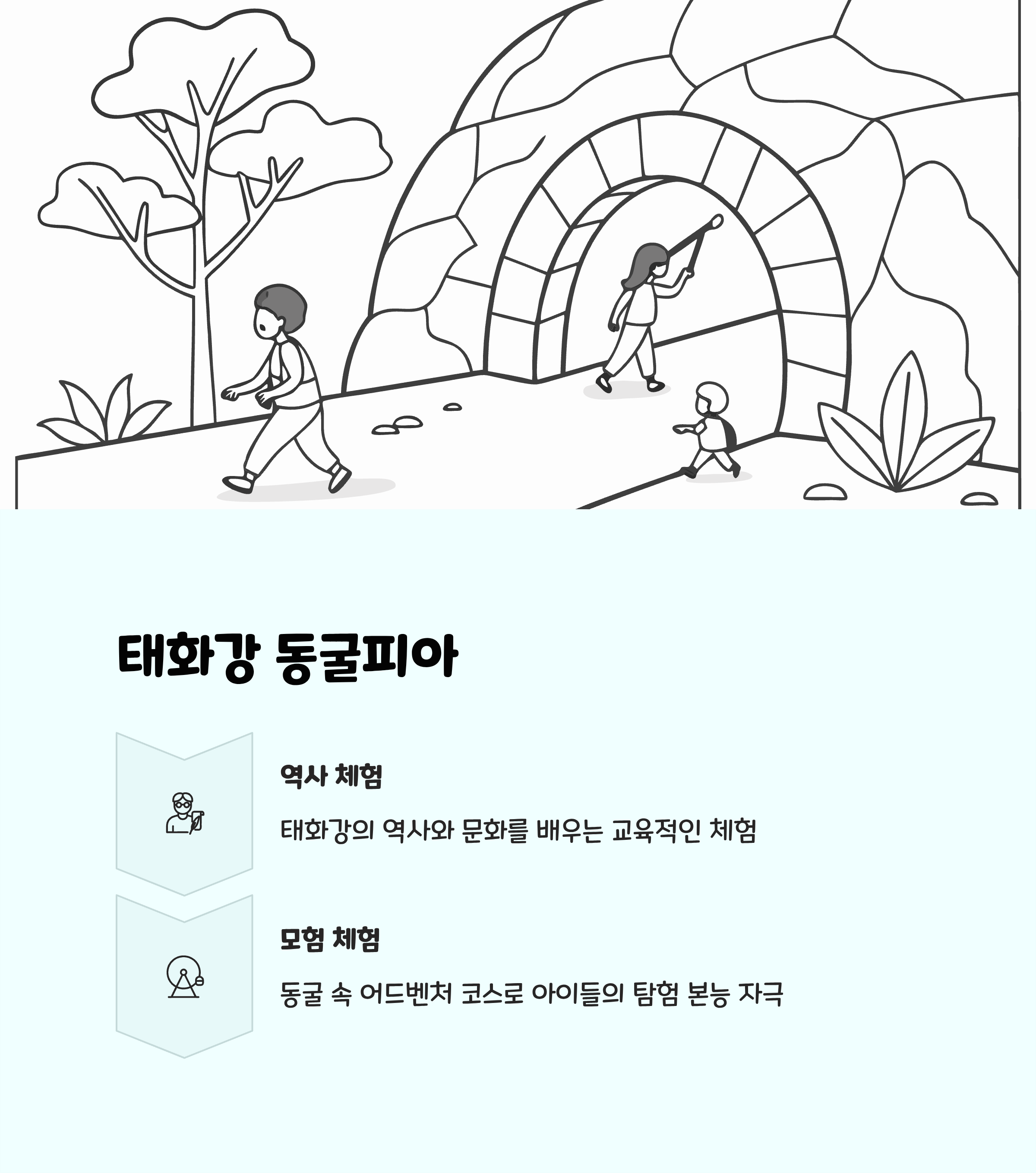 위치: 울산 남구 남산로특징: 울산 남구에 위치한 동굴테마파크로, 일제강점기 역사를 주제로 조명과 어드벤처 체험을 결합한 공간입니다. 동굴 내부에서 어드벤처 놀이와 역사 체험을 동시에 할 수 있으며, 저렴한 입장료로 부담 없이 방문 가능합니다.추천 이유: 역사 교육과 놀이가 자연스럽게 융합된 공간으로 아이들에게 역사를 재미있게 가르칠 수 있으며, 가족 단위로 가벼운 나들이를 하기에 좋습니다.