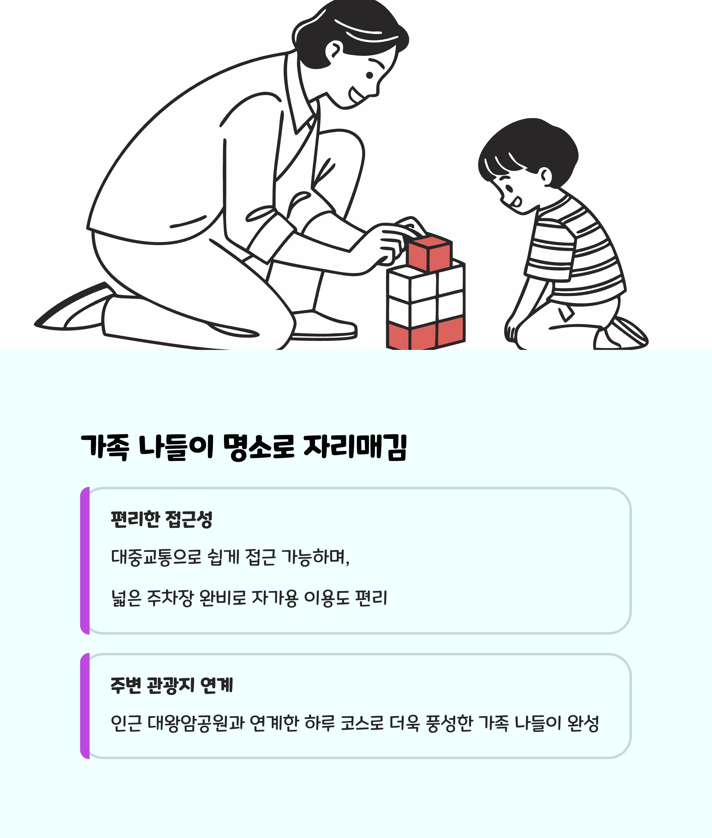 대왕암공원 내 위치해 산책과 자연 체험 병행 가능- 수유실 및 편안한 휴게 공간 마련, 가족 맞춤 서비스 제공