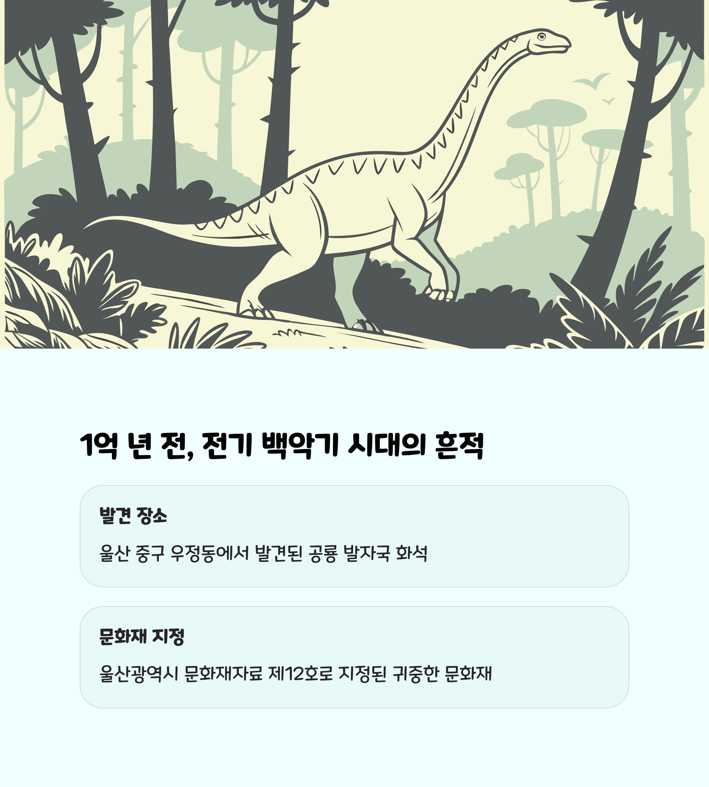 공룡발자국공원은 단순한 공원이 아닌, 아이들의 호기심과 상상력을 키우면서 자연과 선사 시대 생태를 배우는 현장입니다. 가족과 함께 울산 중구 우정동 공룡발자국공원에서 추억과 배움이 함께하는 특별한 시간을 꼭 경험해 보시길 권해드립니다.