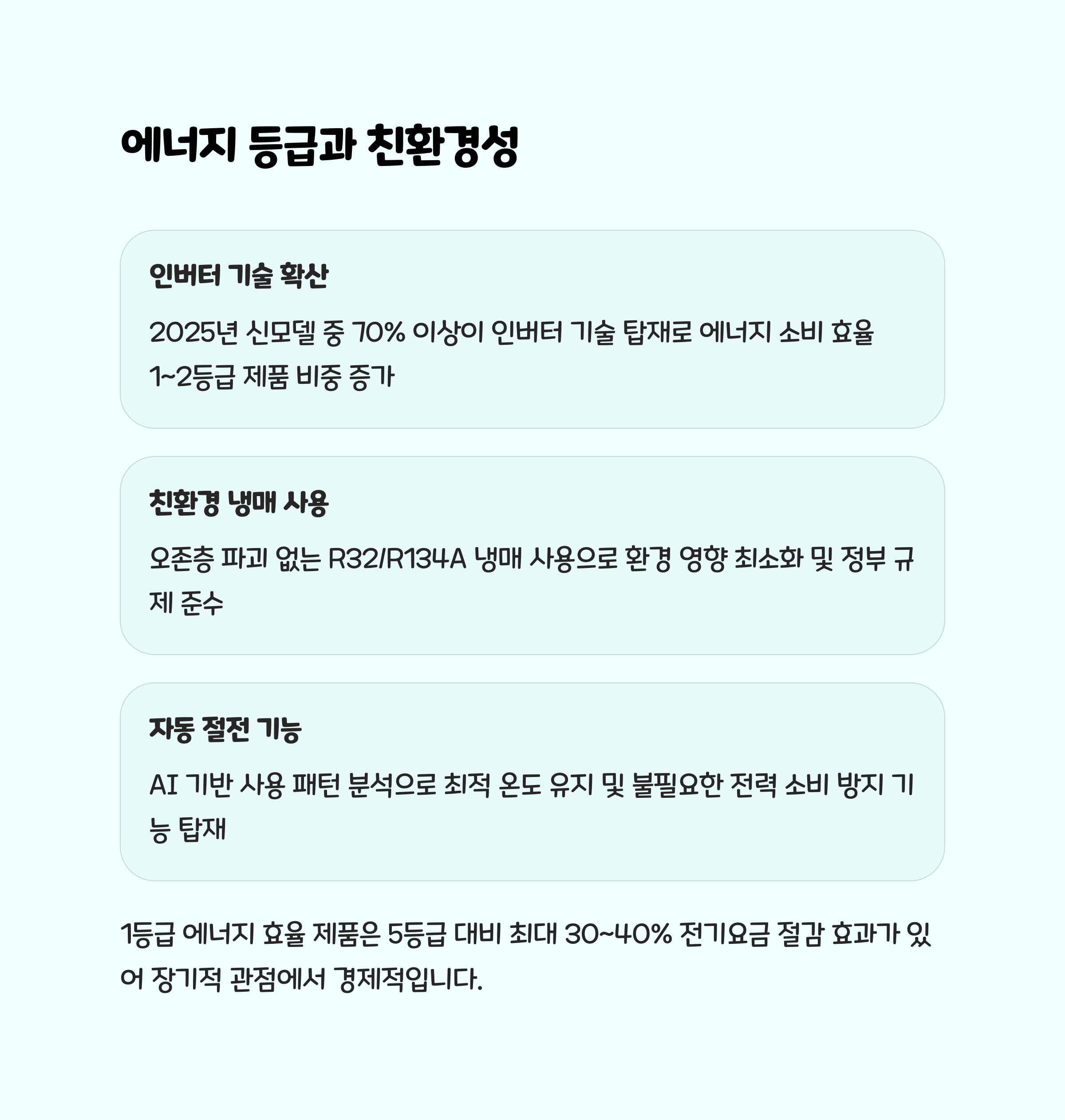 • 전기세 부담 : 1등급 에너지 효율, 저전력 설계로 장시간 사용에도 부담 적음.