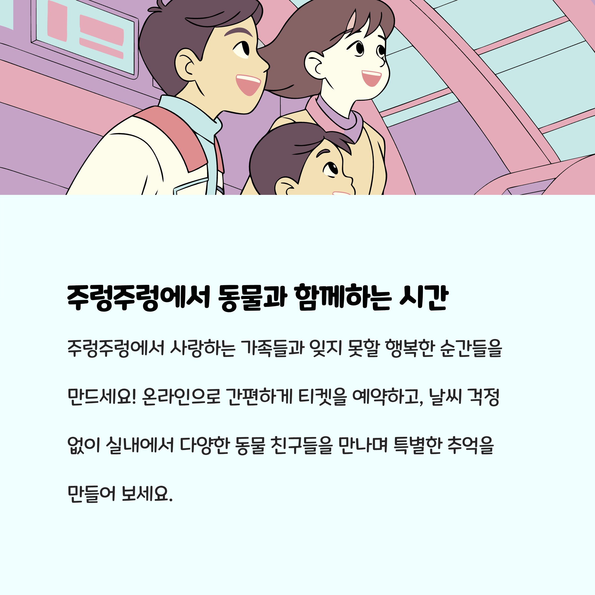 실내에서 가족과 함께 특별한 나들이 장소를 찾고 계신가요? 특히 날씨나 미세먼지 걱정 없이 아이와 동물과 교감할 수 있는 공간이 필요하다면, 서울 영등포 타임스퀘어에 위치한 실내 동물원 ‘주렁주렁’ 영등포점을 추천드립니다. 이곳은 울타리가 없는 열린 공간에서 아이들이 동물을 직접 보고 만지는 체험이 가능해 생명의 소중함을 배우고, 특별한 추억을 쌓기에 최적의 장소입니다.