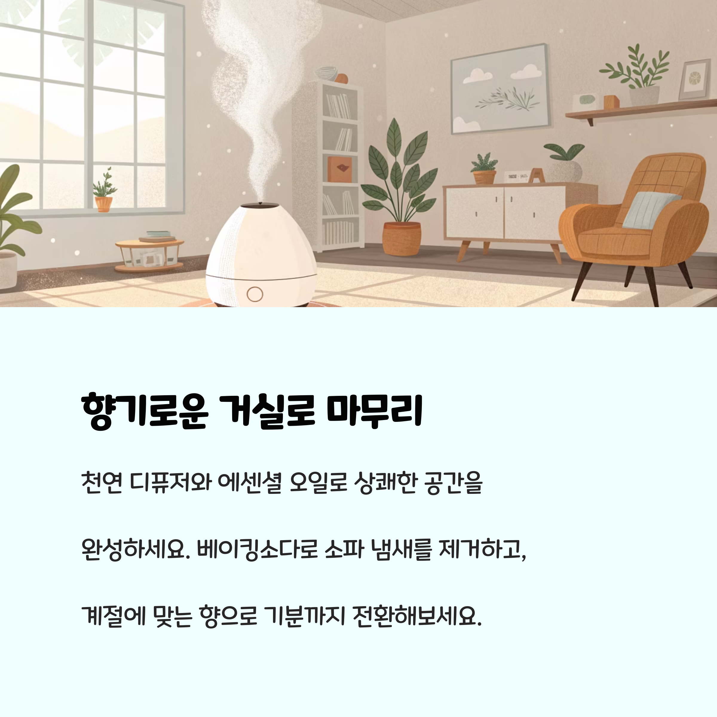 - 향초나 디퓨저를 활용해 마무리하면 쾌적함이 오래갑니다.