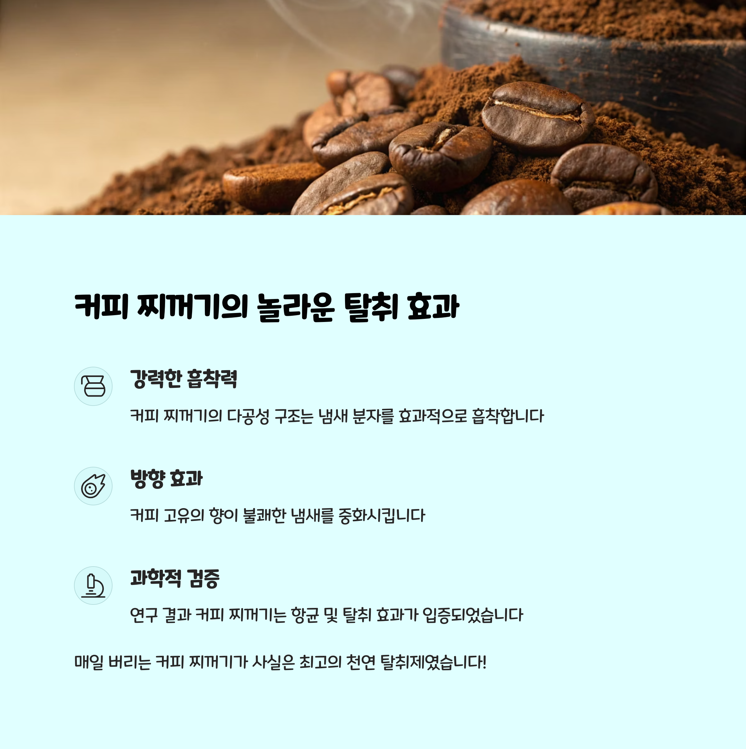 커피 찌꺼기가 악취 제거에 효과적인 이유는 무엇인가요?