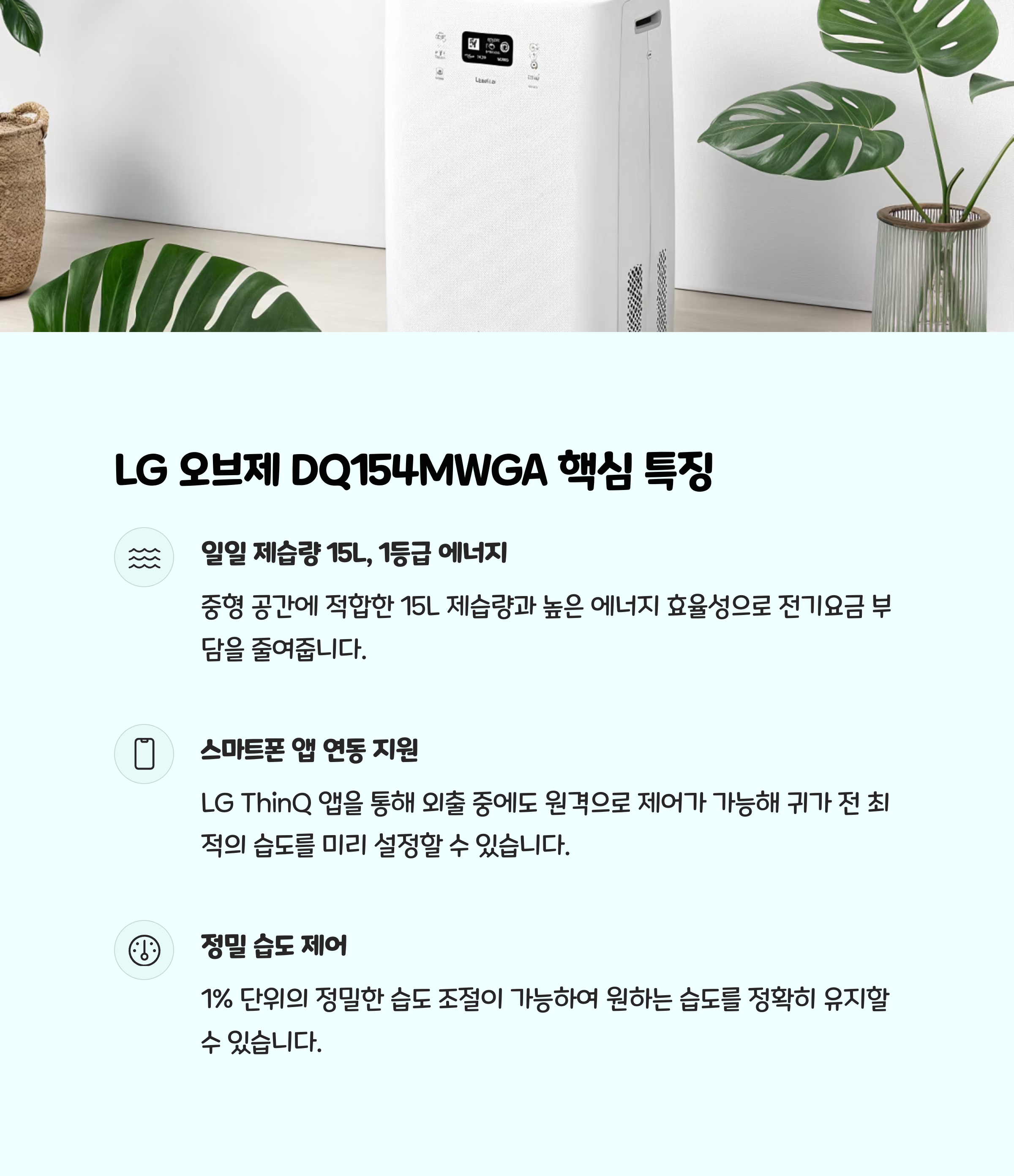 - 스마트 관리 시스템 : LG ThinQ 앱 연동으로 실시간 습도 모니터링
