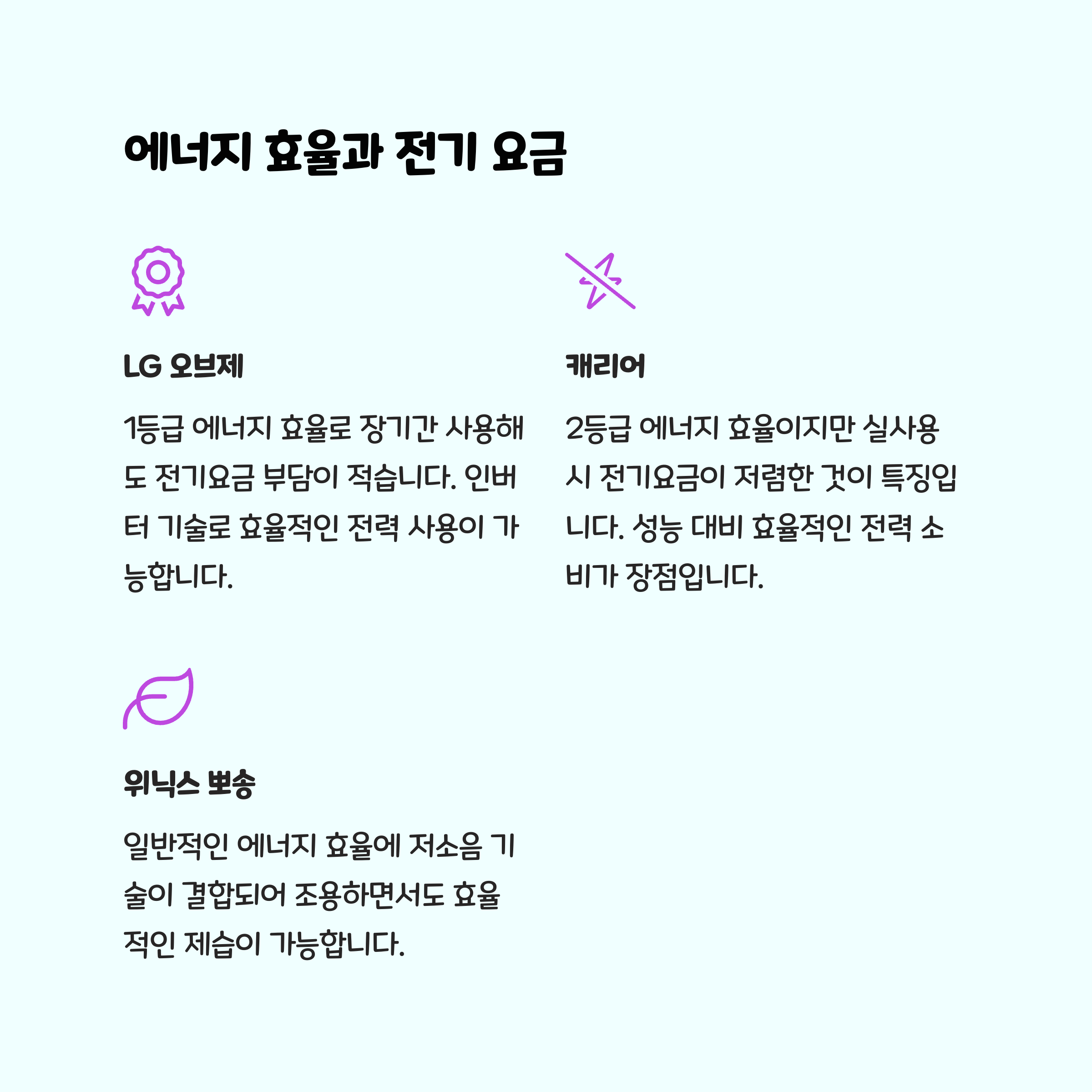 | 구분 | LG 오브제컬렉션 | 캐리어 클라윈드 | 위닉스 뽀송 |