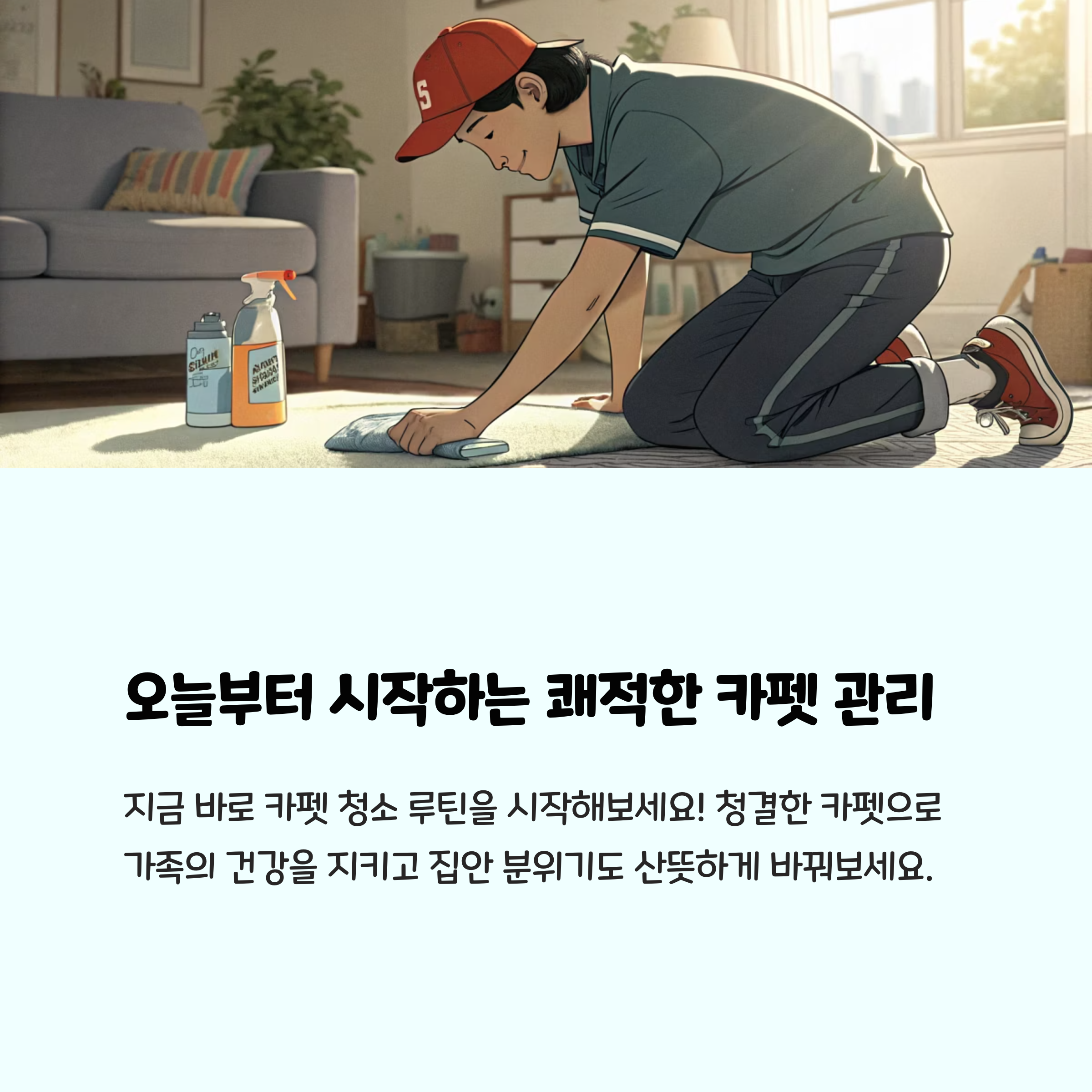 카펫 청소는 어렵고 번거로울 것 같지만, 베이킹소다와 식초, 그리고 집에 있는 간단한 도구만 있으면 누구나 손쉽게 관리할 수 있습니다. 정기적으로 관리하면 쾌적한 실내 환경과 건강까지 지킬 수 있으니, 오늘부터 바로 실천해 보세요!