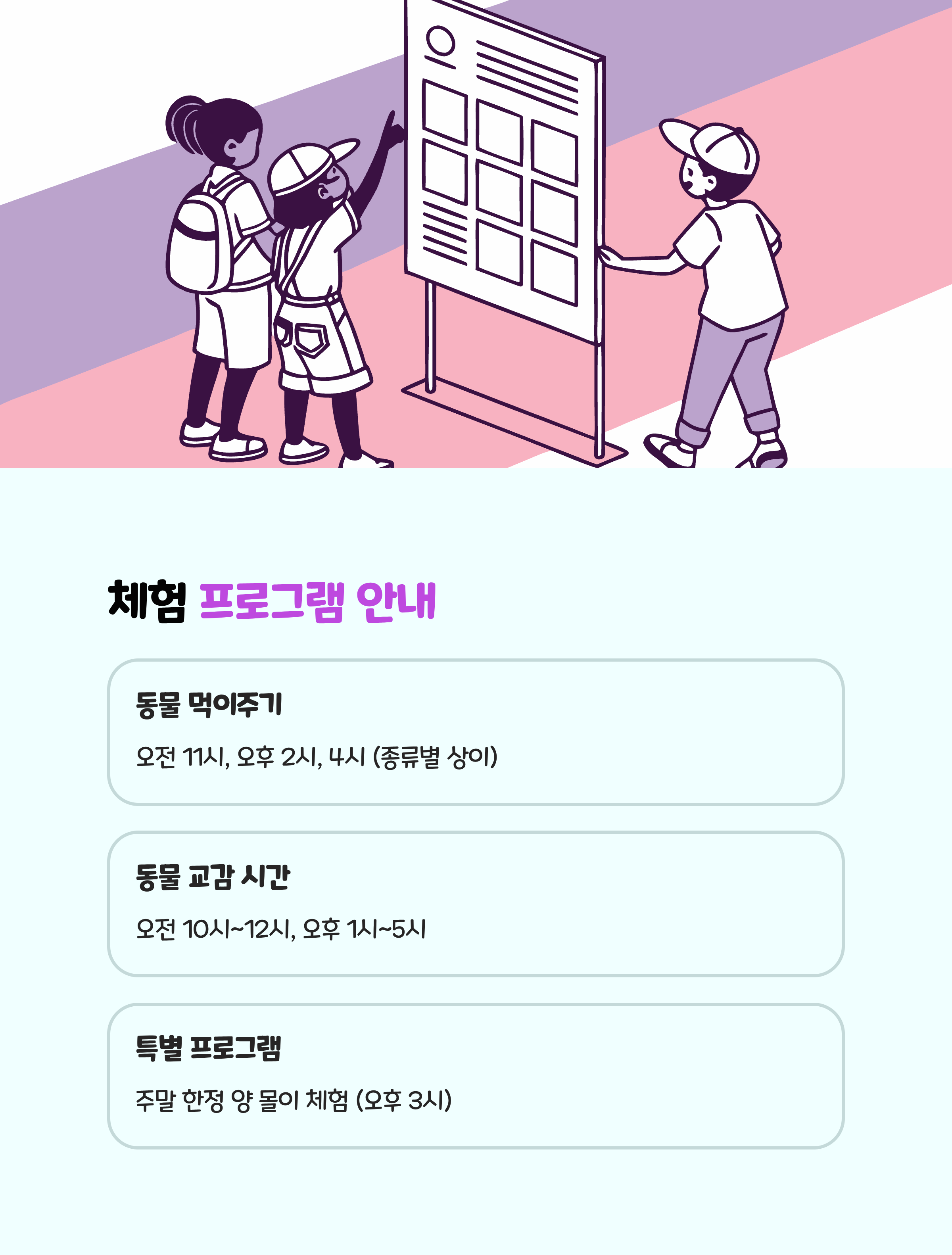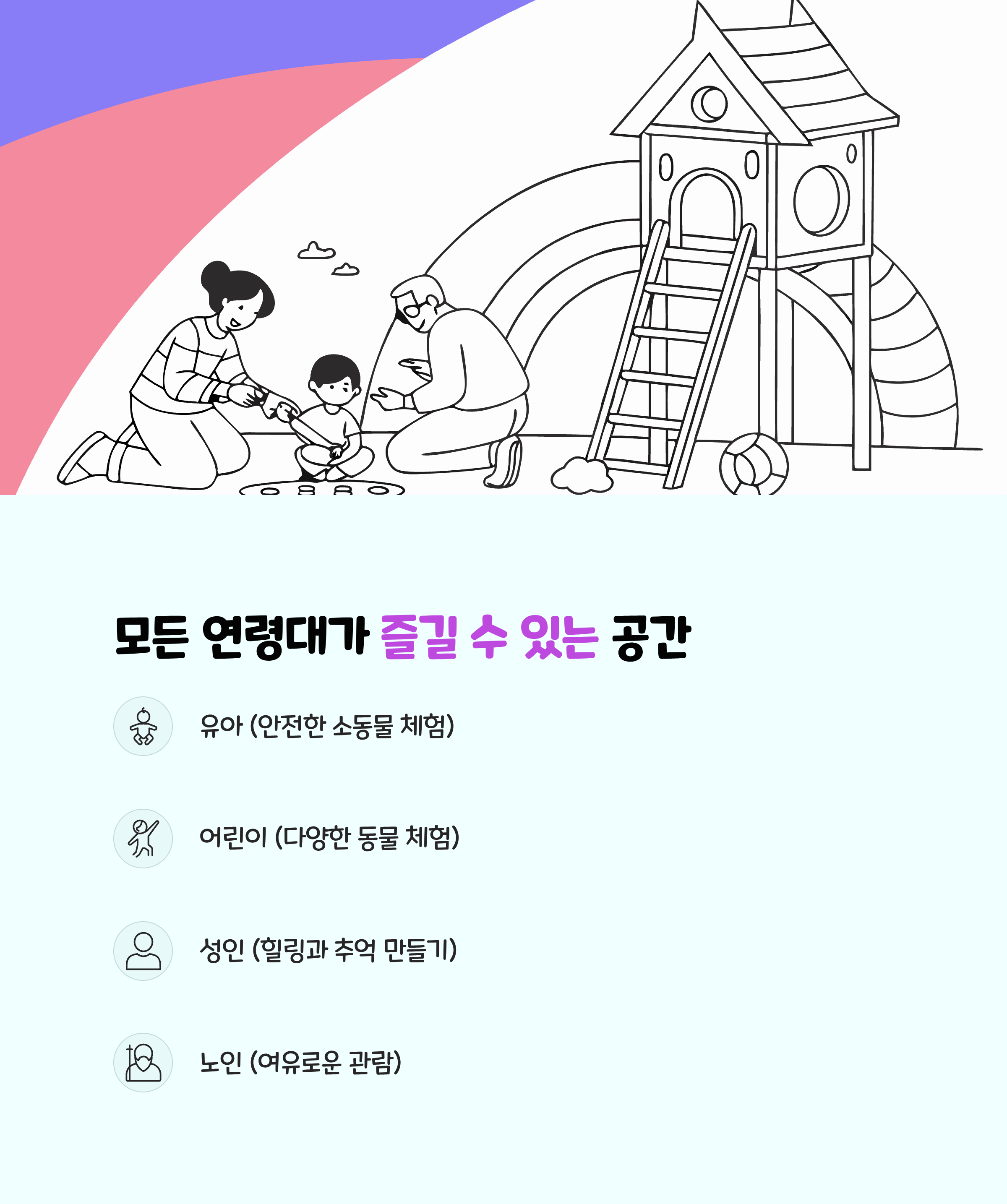 - 어린이 동물 체험, 소규모 가족 나들이, 유치원·초등생 교육활동