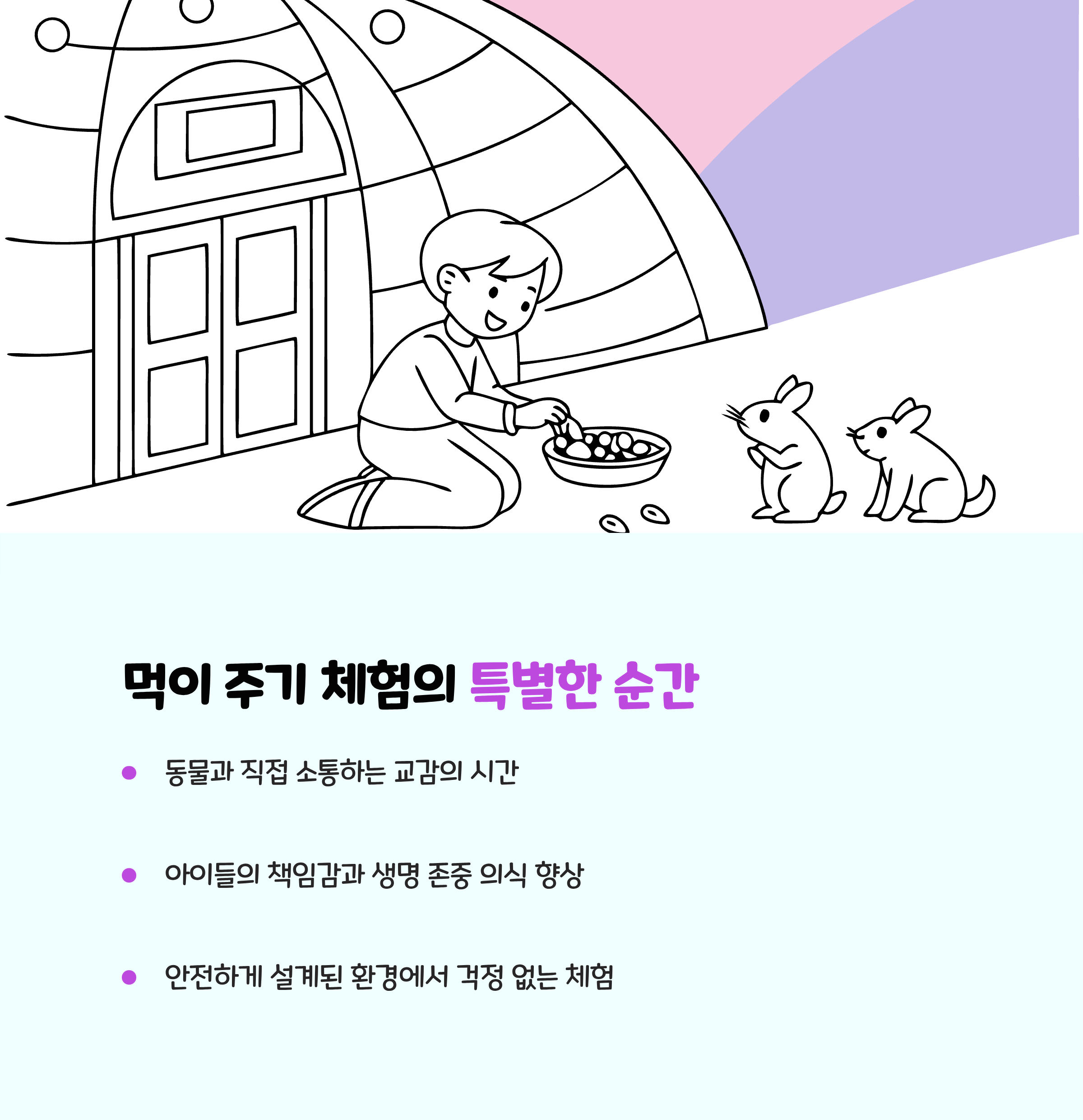 • 동물 간식세트: 현장 구매 가능, 다양한 체험 프로그램 상시 운영.