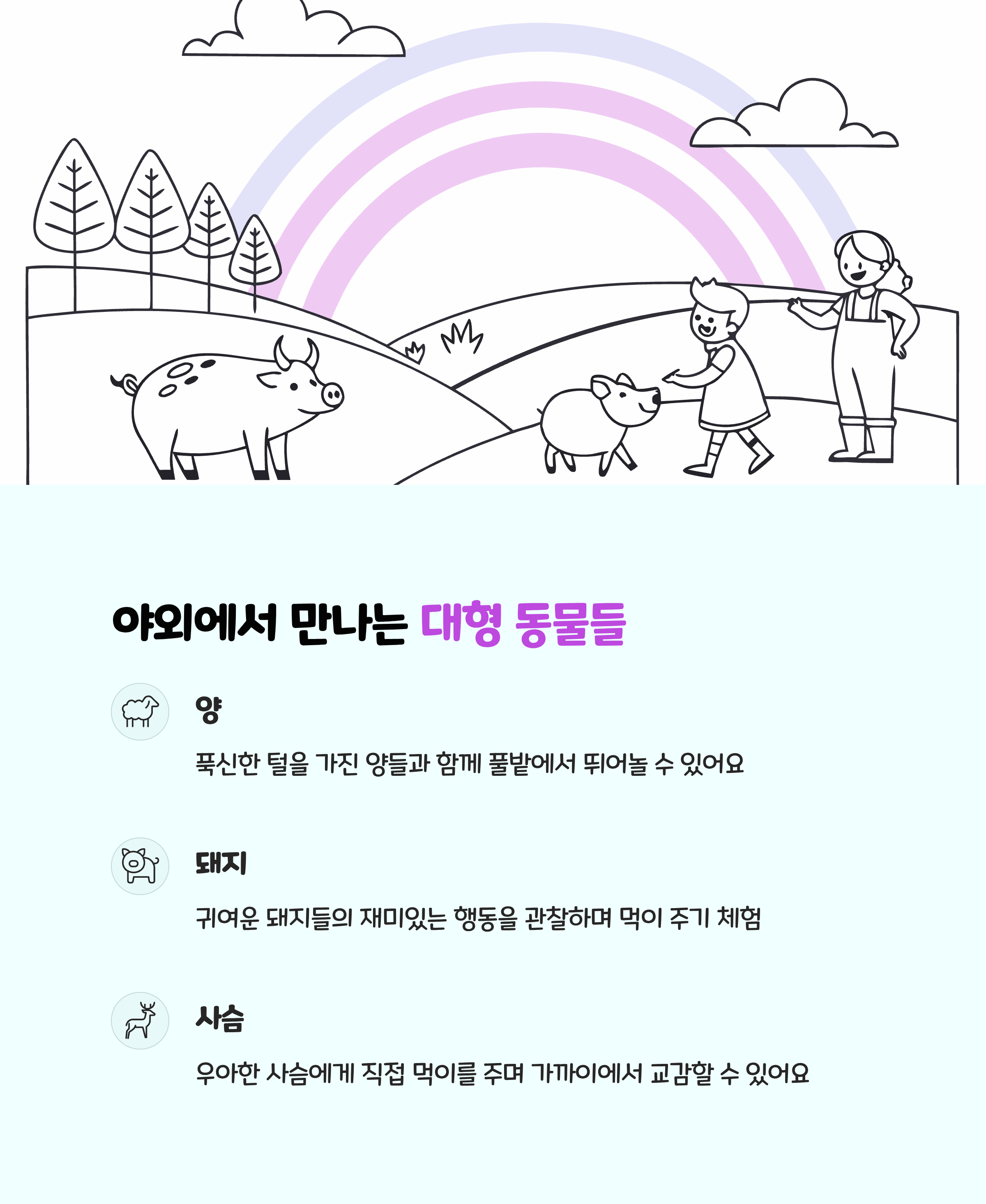 • 어린이 동물 체험, 소규모 가족 나들이, 유치원·초등생 교육활동