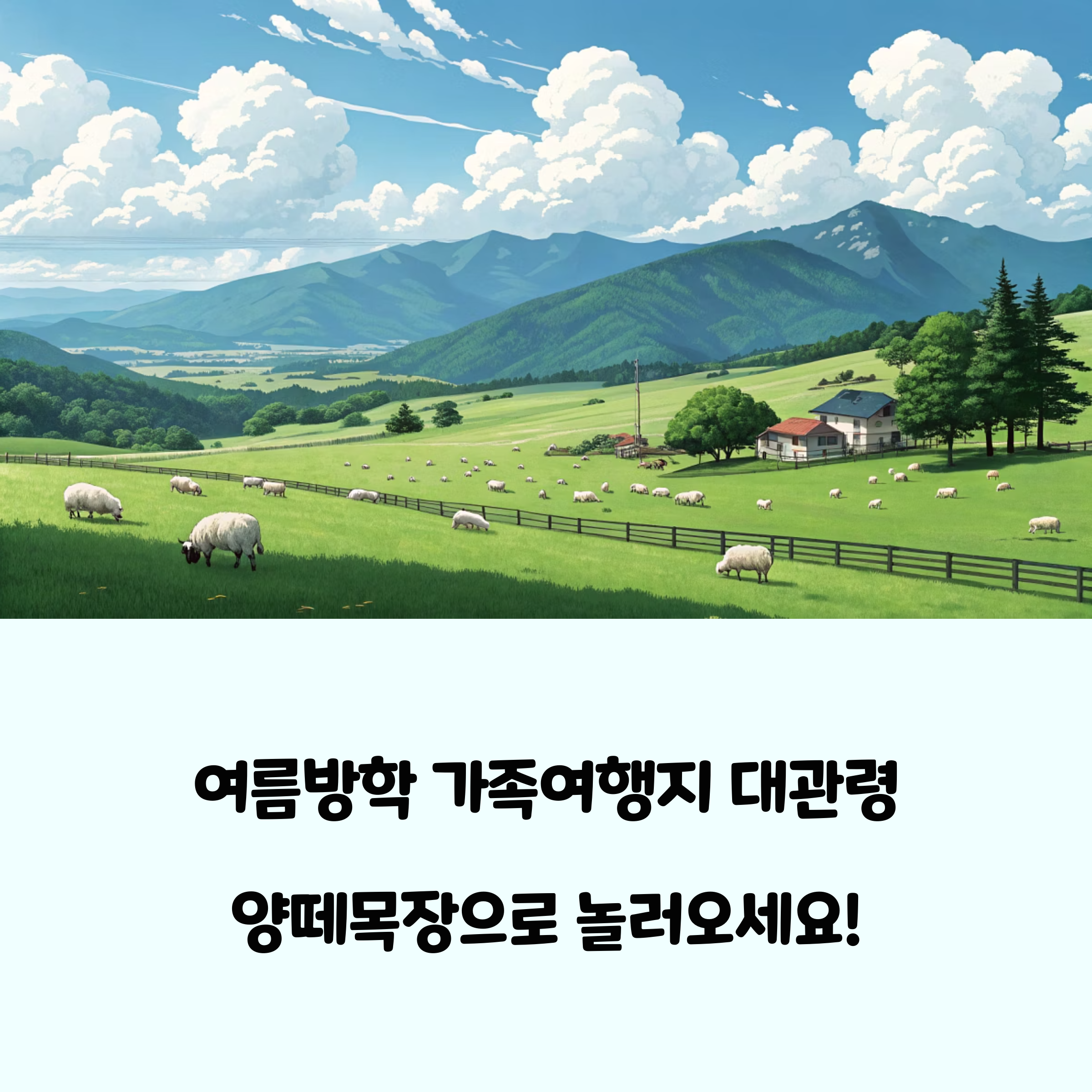 여름방학, 어디로 떠날지 고민하는 가족에게 평창 대관령 양떼목장은 자연, 체험, 힐링을 모두 누릴 수 있는 최적의 여행지입니다. 실질적인 체험 정보와 꿀팁, 주변 여행지까지 꼼꼼히 준비한다면, 가족 모두가 만족하는 잊지 못할 여름방학을 보낼 수 있습니다.