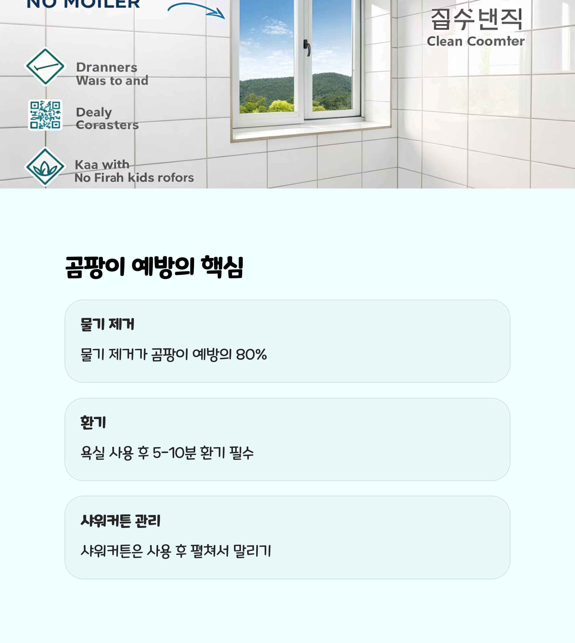 습기가 오래 남아 있으면 곰팡이와 악취가 생기기 쉽기 때문에, 샤워 후에는 환풍기를 돌리거나 창문을 열어 환기해 주세요. 환기가 잘 되면 욕실이 더 오랫동안 깨끗하게 유지됩니다.