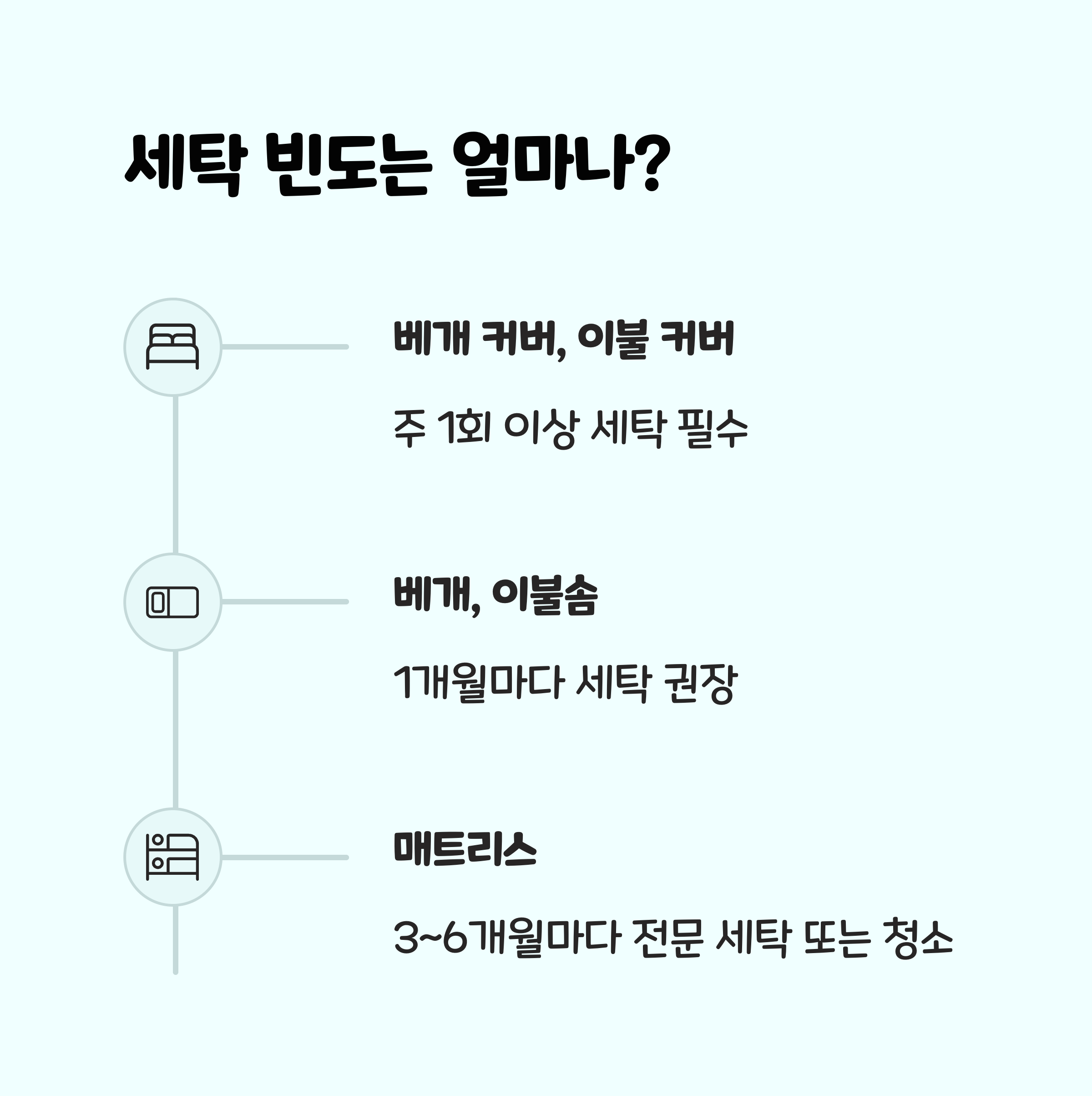 - 비염·아토피 환자 : 최소 주 1회 세탁이 이상적