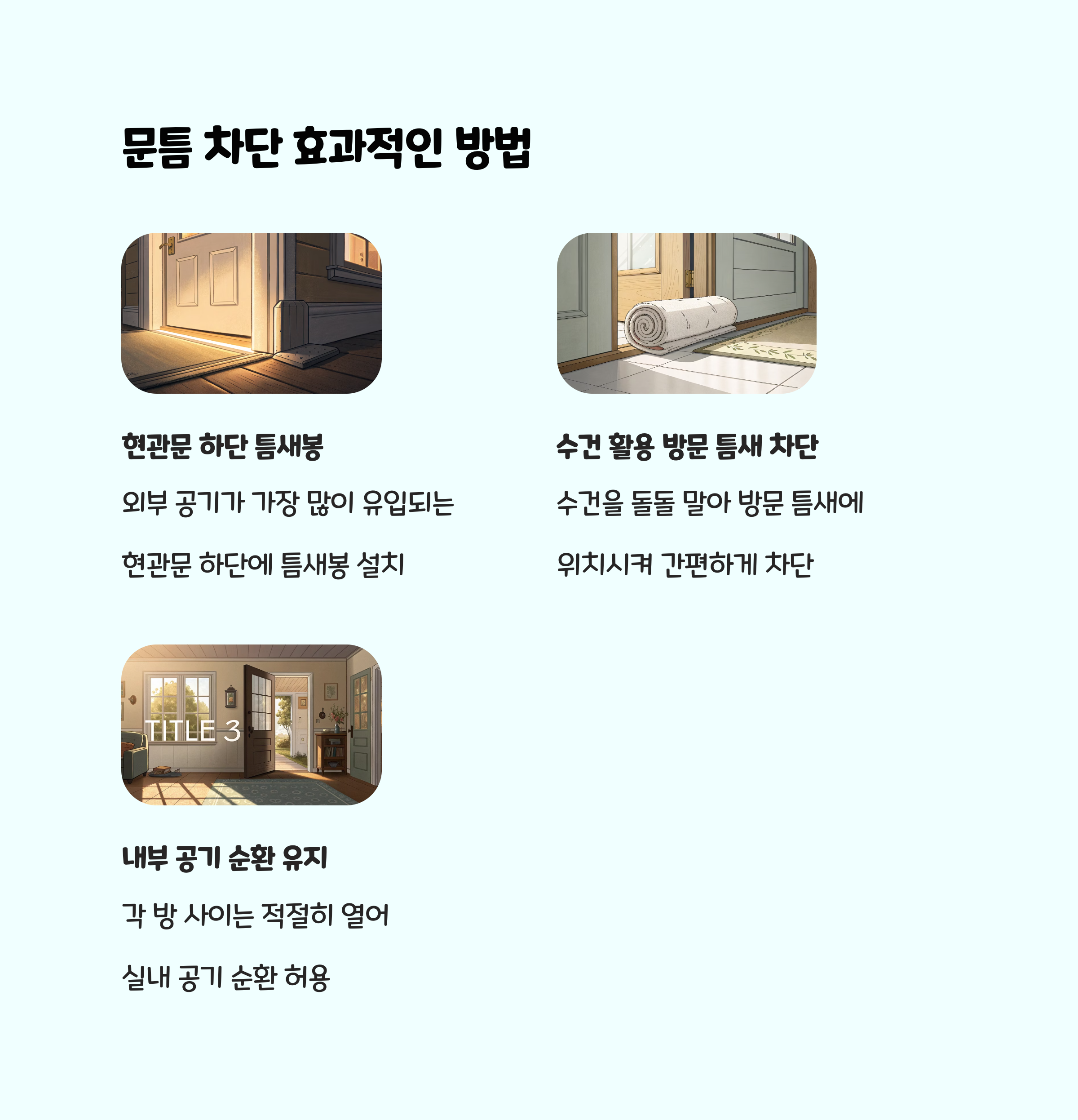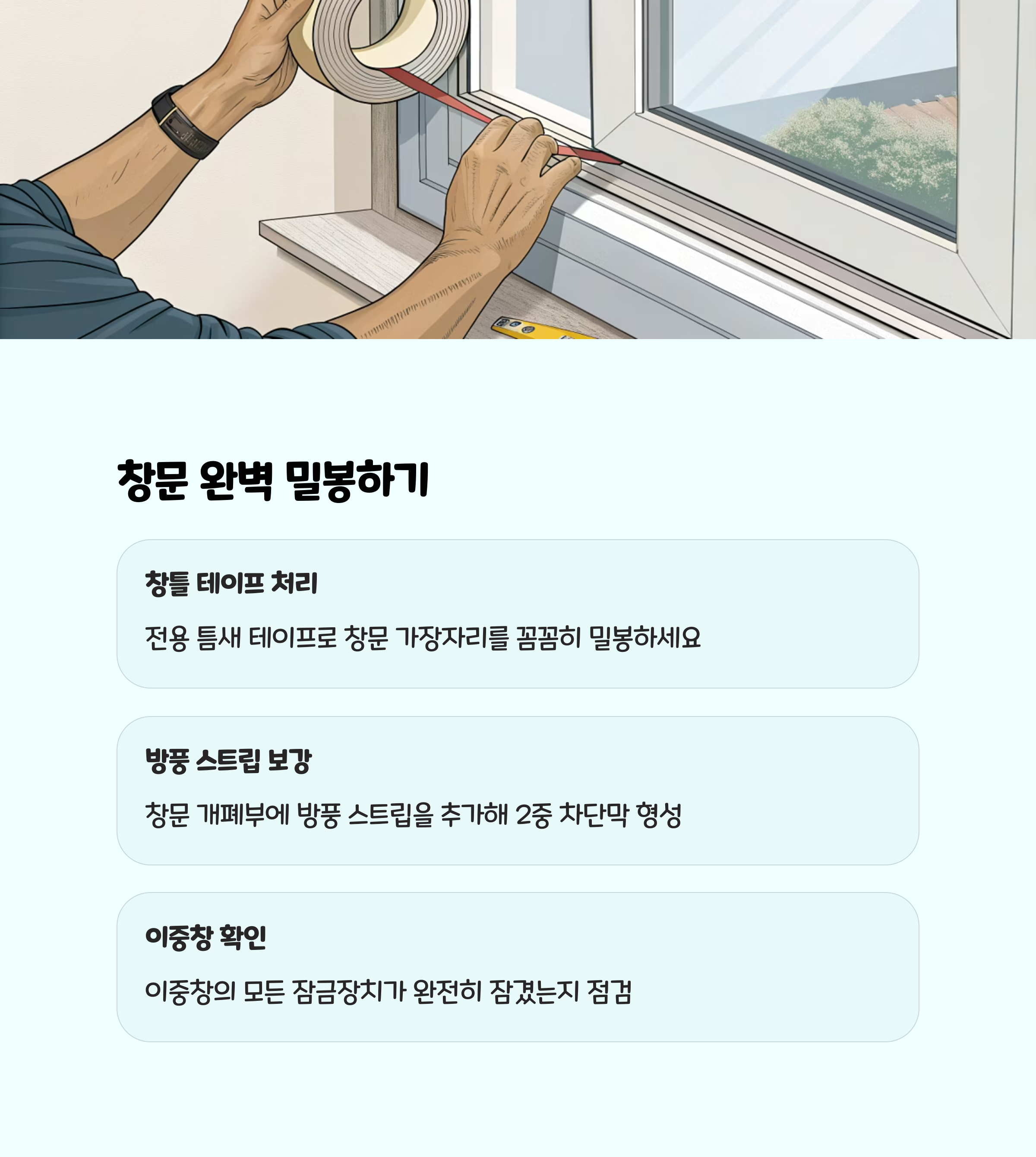 창문과 출입문 철저히 닫기 및 틈새 막기