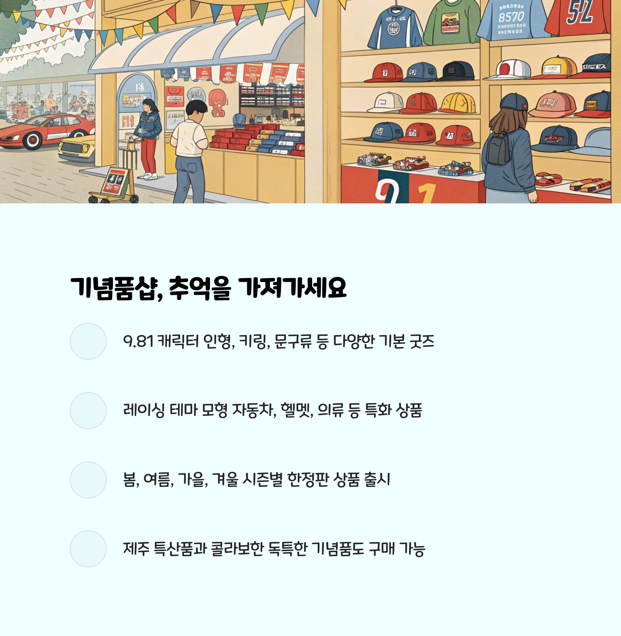 • “먹거리, 기념품샵, 휴식 공간까지 모두 갖춰져 있어 부모도 만족!”