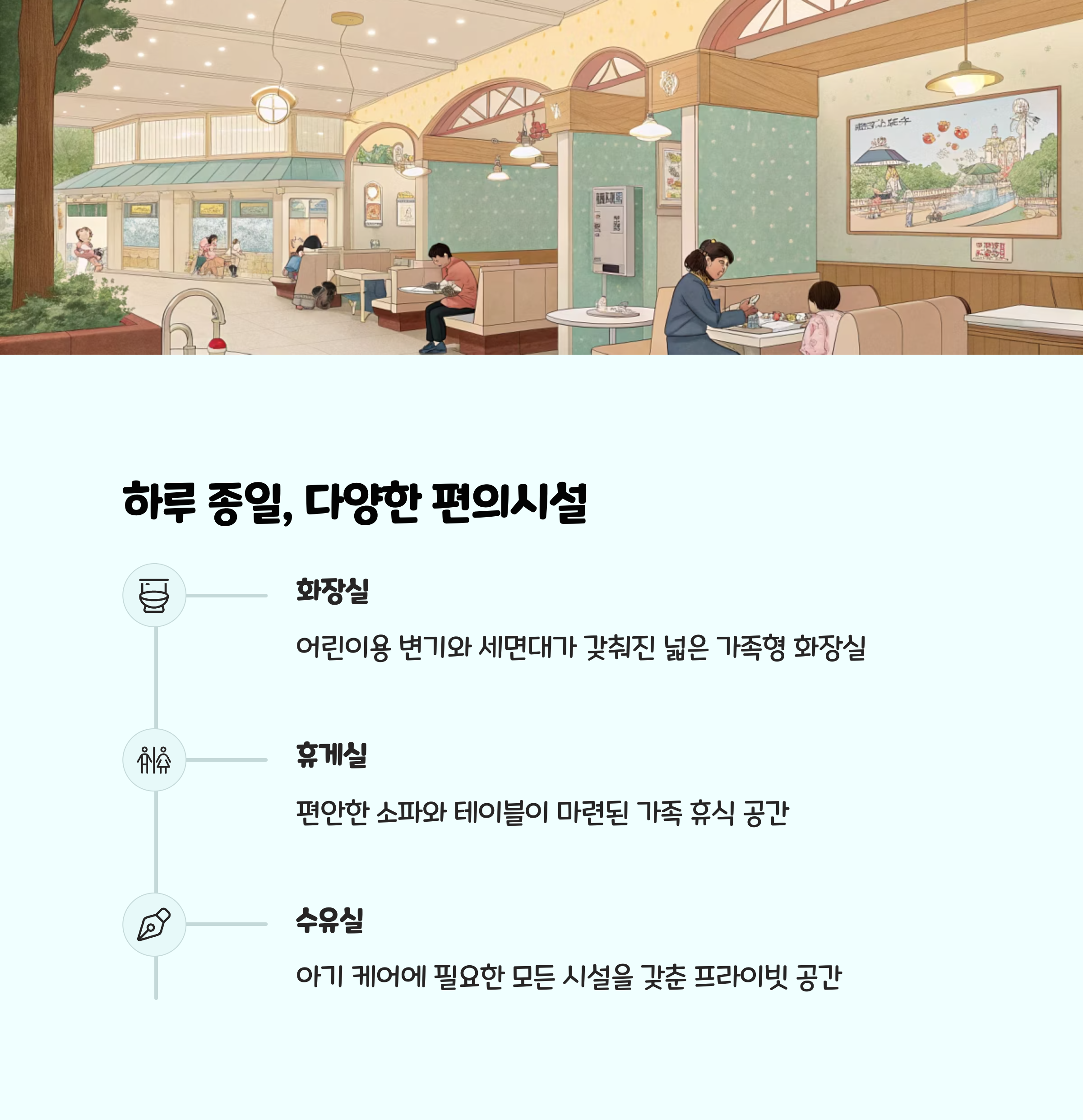 편의시설 및 먹거리, 휴식 공간
