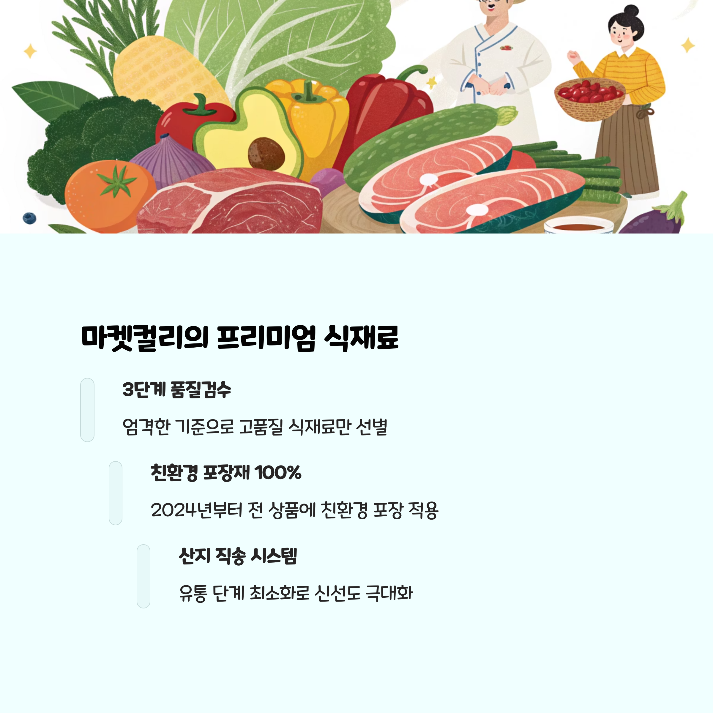 | 마켓컬리 | 프리미엄 신선식품, 엄격한 큐레이션 | 중고가 | 샛별배송(새벽), 수도권 중심 | 고급 식재료, 포장 우수, 가격은 다소 높음 |