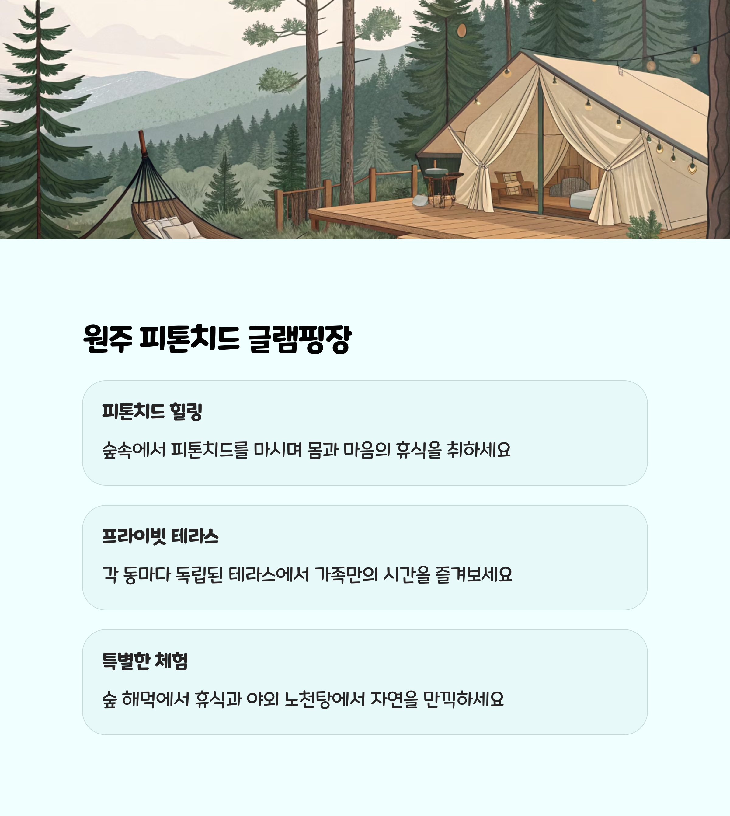 강원 원주 피톤치드 글램핑장 – 숲 속 웰니스와 액티비티의 조화