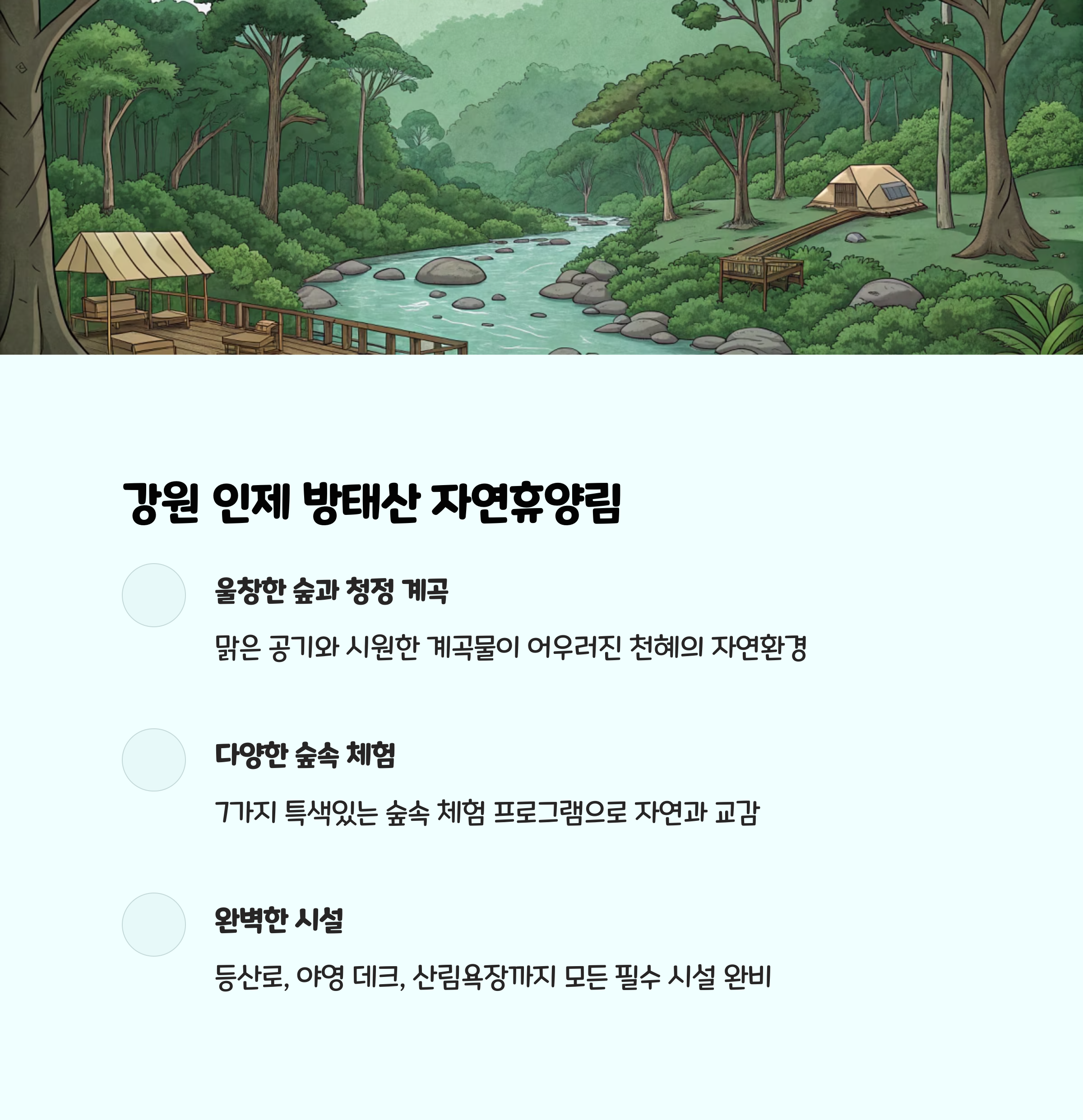 강원 인제 방태산 자연휴양림 – 숲과 계곡이 주는 위로